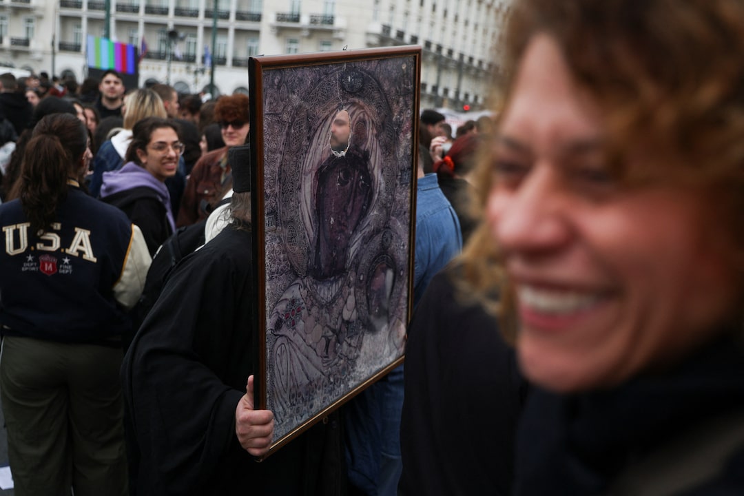 “每天,腐败权力的怪物都出现在我们面前,”玛丽亚·卡里斯蒂亚努说,她的女儿在事故中遇难,并且她领导着一个受害者家庭协会,她在雅典的人群中说道。