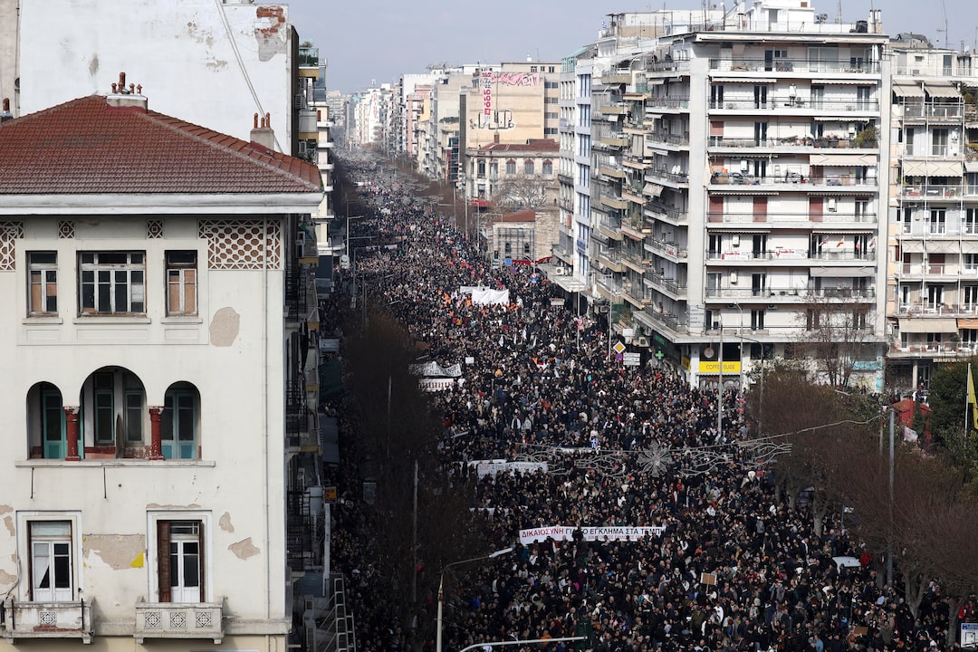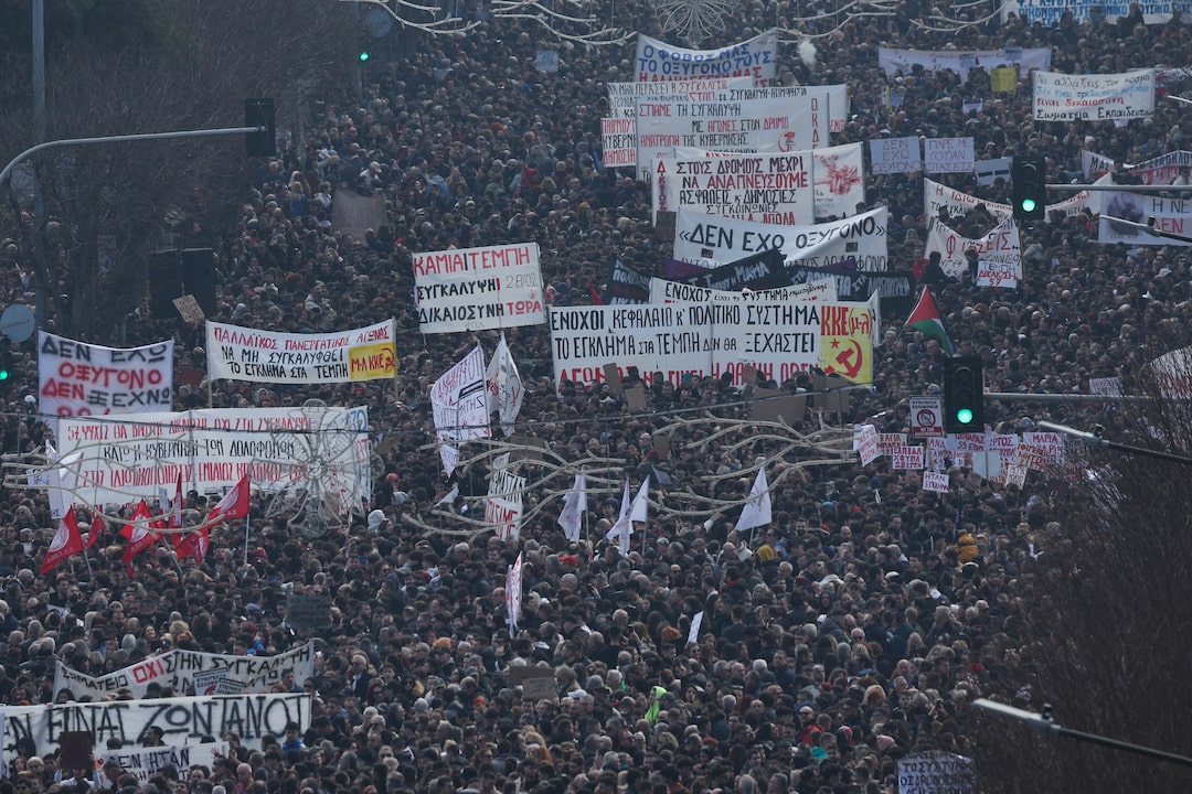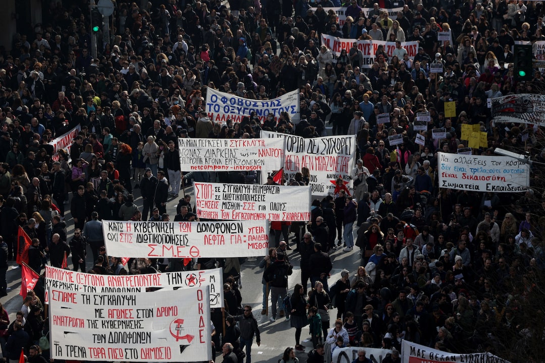 学生们喊道:“到达那里时给我发短信,”这是许多受害者亲属给他们发送的最后信息。一块纸板标语写着:“希腊在杀死它的孩子。”