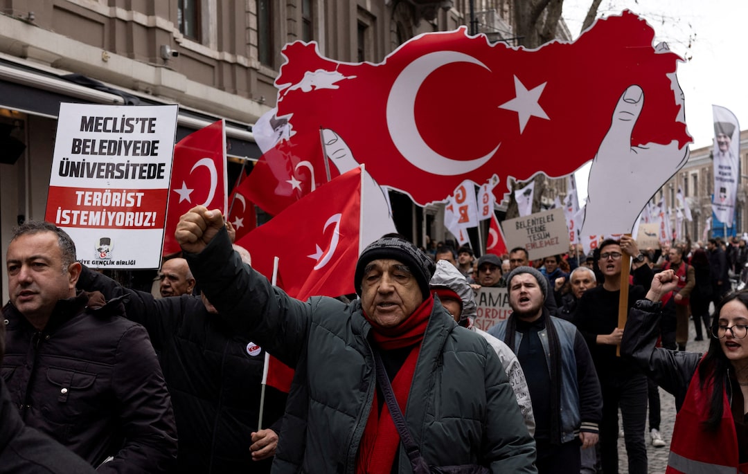 星期四的呼吁来自库尔德工人党(PKK)领导人阿卜杜拉·厄贾兰对该非法组织解除武装和解散的呼吁在土耳其引发了希望与怀疑。这一声明伴随着一张厄贾兰与亲库尔德政治家坐在一起的照片,标志着一场微妙对话的结束。埃尔多安寻求利用叙利亚的动荡和对位于北伊拉克的库尔德工人党(PKK)战斗人员的军事胜利。现在的成功取决于各方之间的持续合作,但政治分析家对位于北伊拉克山区的PKK武装分子是否会听从被关押在伊斯坦布尔附近一个岛屿监狱中长达25年的奥贾兰的呼吁并不乐观。