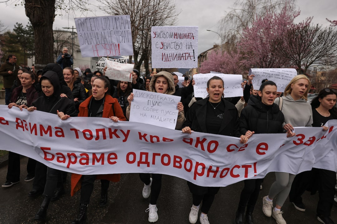 一些人举着标语,上面写着:“我们不是因为事故而死;我们是因为腐败而死”和“如果你有关系,这里的一切都是合法的”。数百人还在斯科普里的市中心举行了守夜活动。