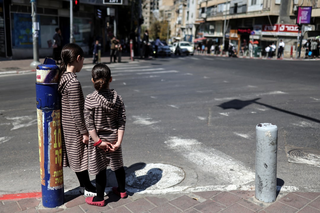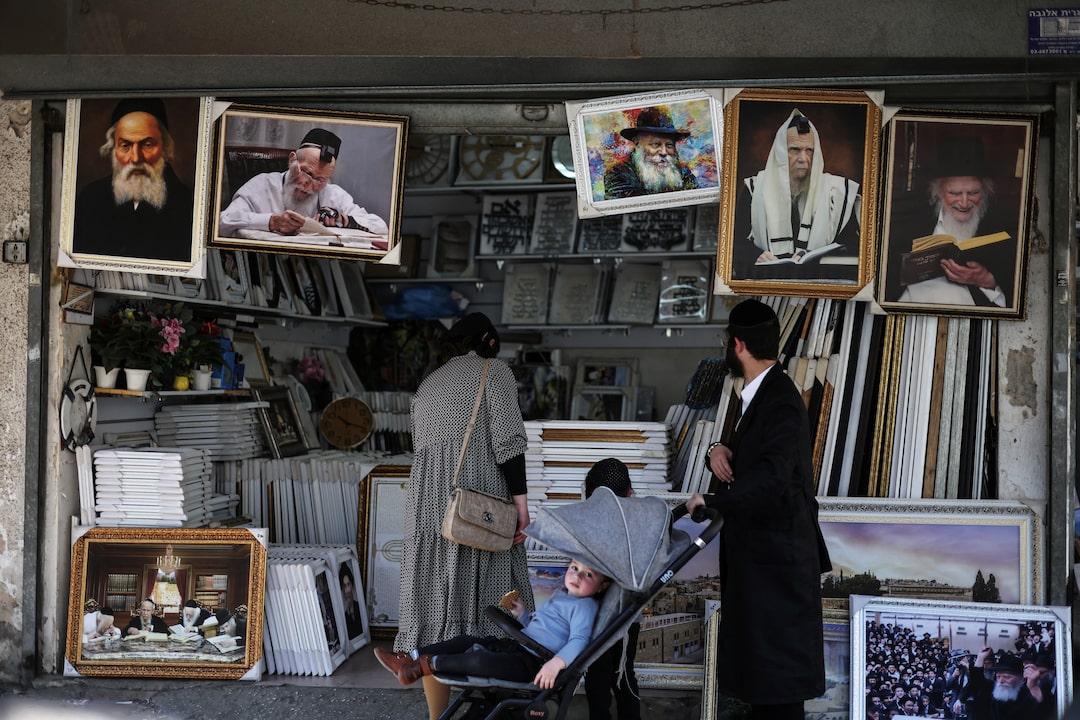 第1项,共5项 一家超正统犹太人在以色列贝内布拉克的超正统犹太人城市购物,2025年3月16日。路透社/Nir Elias
