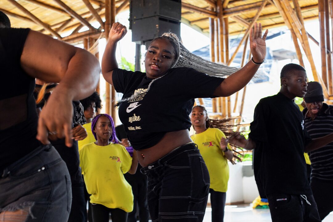 第1项,共6项 黑男孩舞蹈团的年轻人在哥伦比亚基布多进行排练,2025年3月15日。路透社/保拉·安德烈·奥罗斯科
