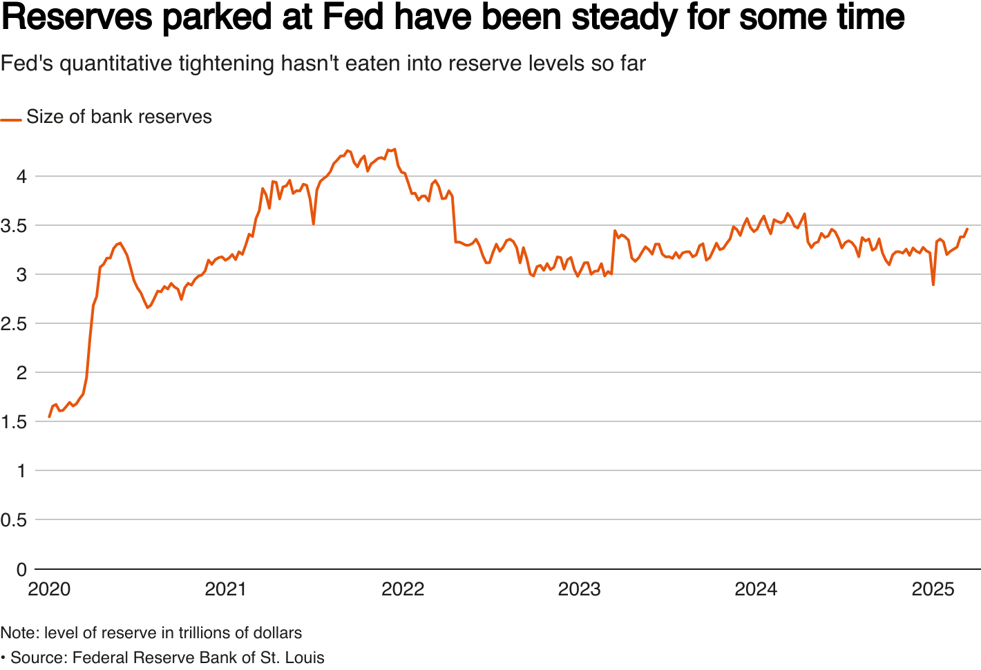 美国银行则表示,在一个由于特朗普总统政府宣布关税而导致不确定性增加的会议上,“量化紧缩可能会暂停”。