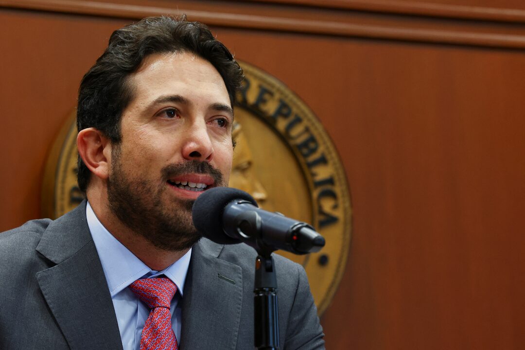 项目 1 的 2 照片档案:哥伦比亚财政部长迭戈·格瓦拉在2025年1月31日于哥伦比亚波哥大中央银行举行的新闻发布会上发言。路透社/路易莎·冈萨雷斯