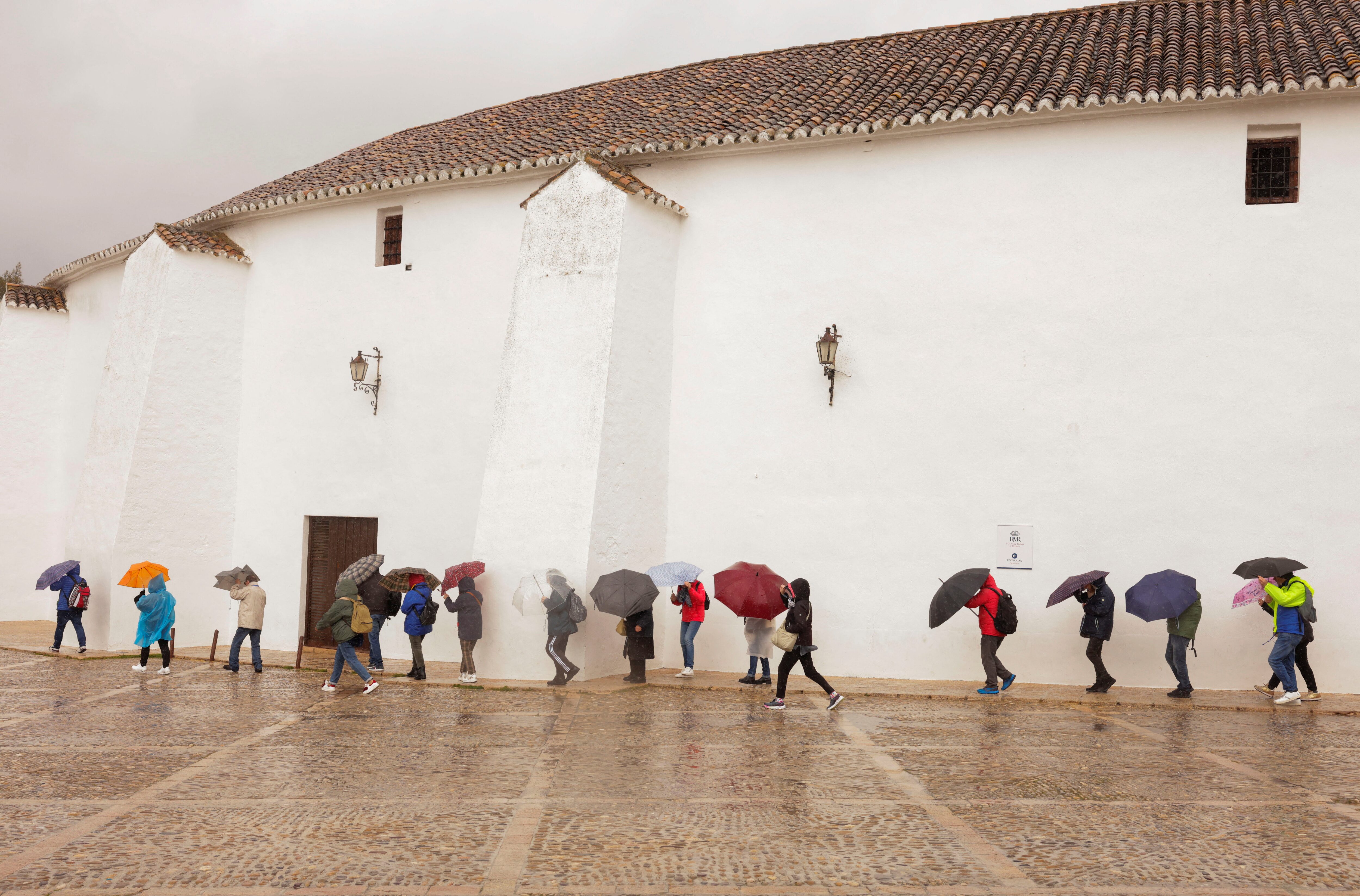 游客们撑着伞躲避强烈的雨和大风,走在斗牛场外的市中心,暴风雨康拉德袭击西班牙、葡萄牙和法国,地点:西班牙隆达,2025年3月13日。路透社/乔恩·纳斯卡/档案照片马德里,3月18日(路透社) - 周二,西班牙遭遇强降雨,已连续第三周,安达卢西亚南部地区至少有两人失踪,数百人被疏散,多个河流溢出或面临溢出的风险。