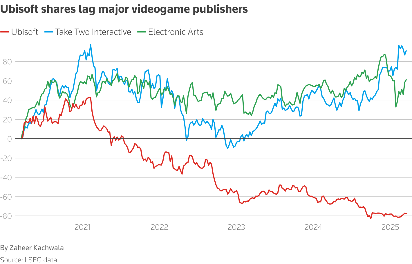 育碧的股票落后于主要电子游戏发行商