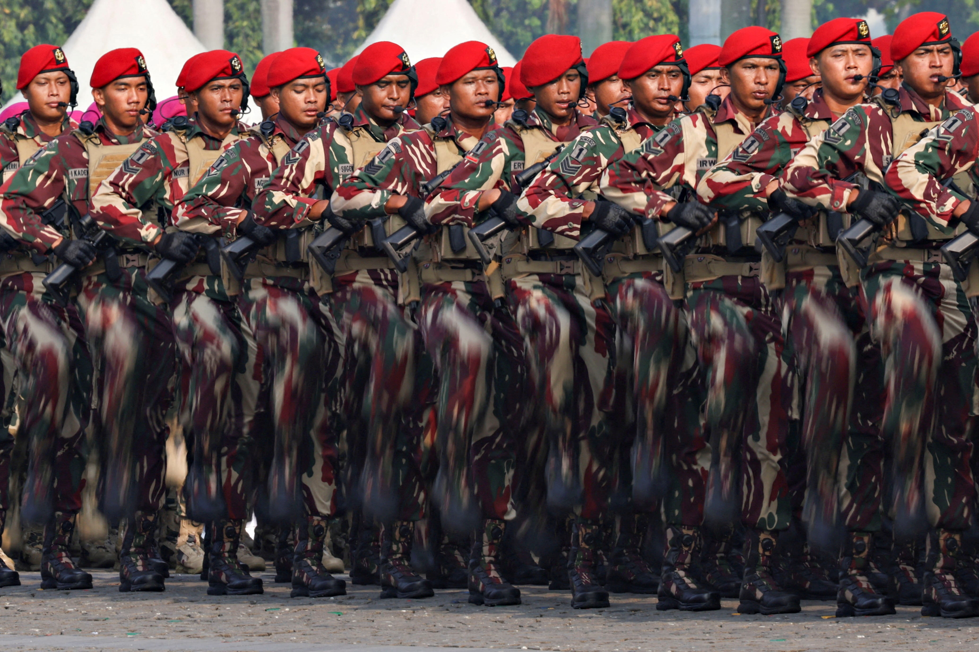 印度尼西亚军队特种部队人员在2024年10月5日于印度尼西亚雅加达国家纪念碑(Monas)综合体举行的第79届印度尼西亚军队周年庆典上行进。路透社/阿詹·迪纳尔·乌尔菲安/档案照片雅加达,3月19日(路透社) - 印度尼西亚的权利组织周三敦促议会拒绝有争议的军事法律修订,称这些修订将使这个群岛回到军事统治的时代,并造成法律不确定性。