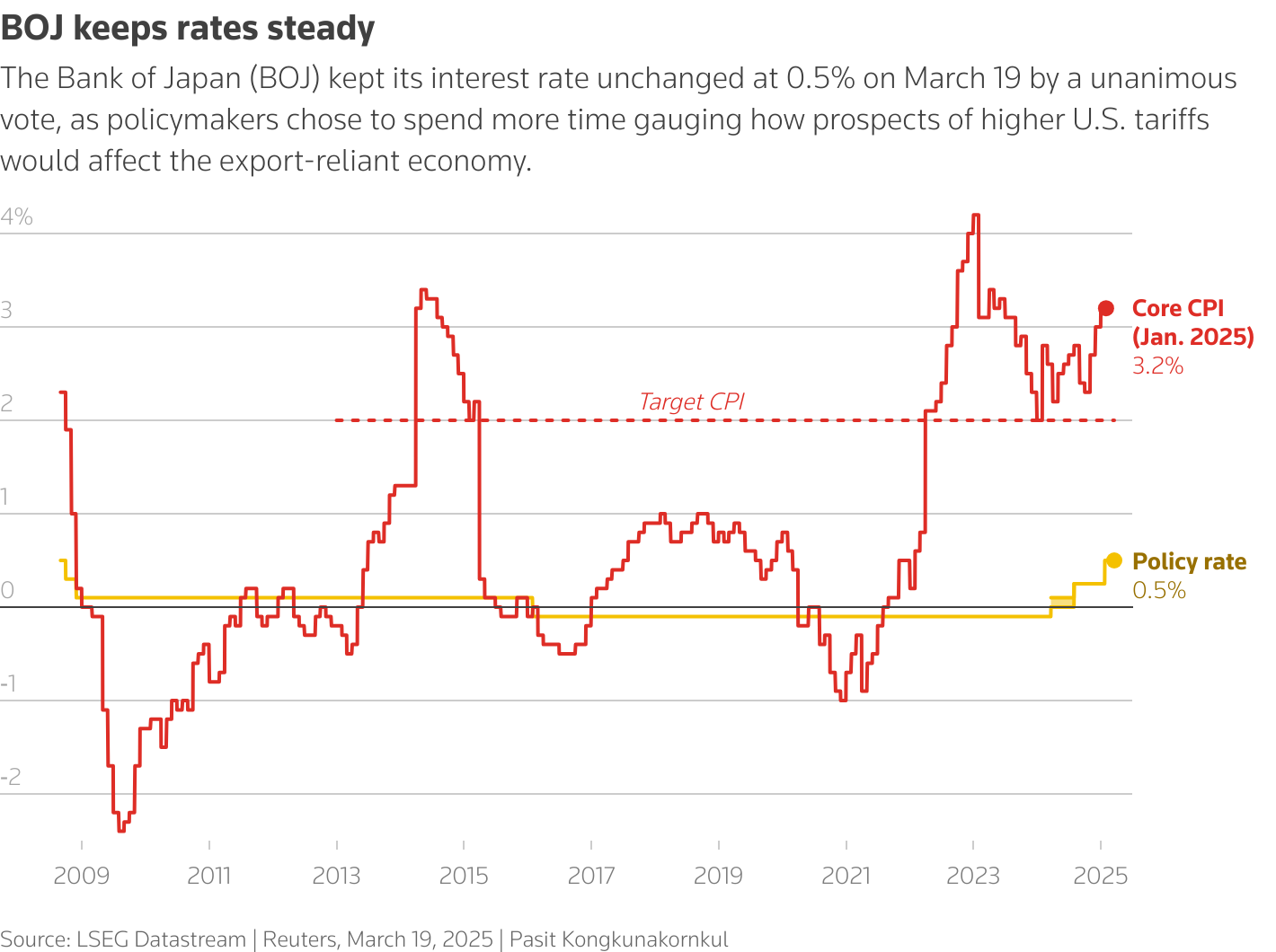 这一决定是在美国总统唐纳德·特朗普的关税政策引发全球经济放缓担忧之际做出的,而这些担忧掩盖了关于工资和价格的数据,这些数据表明日本在实现日本银行2%通胀目标方面正在取得持久进展。