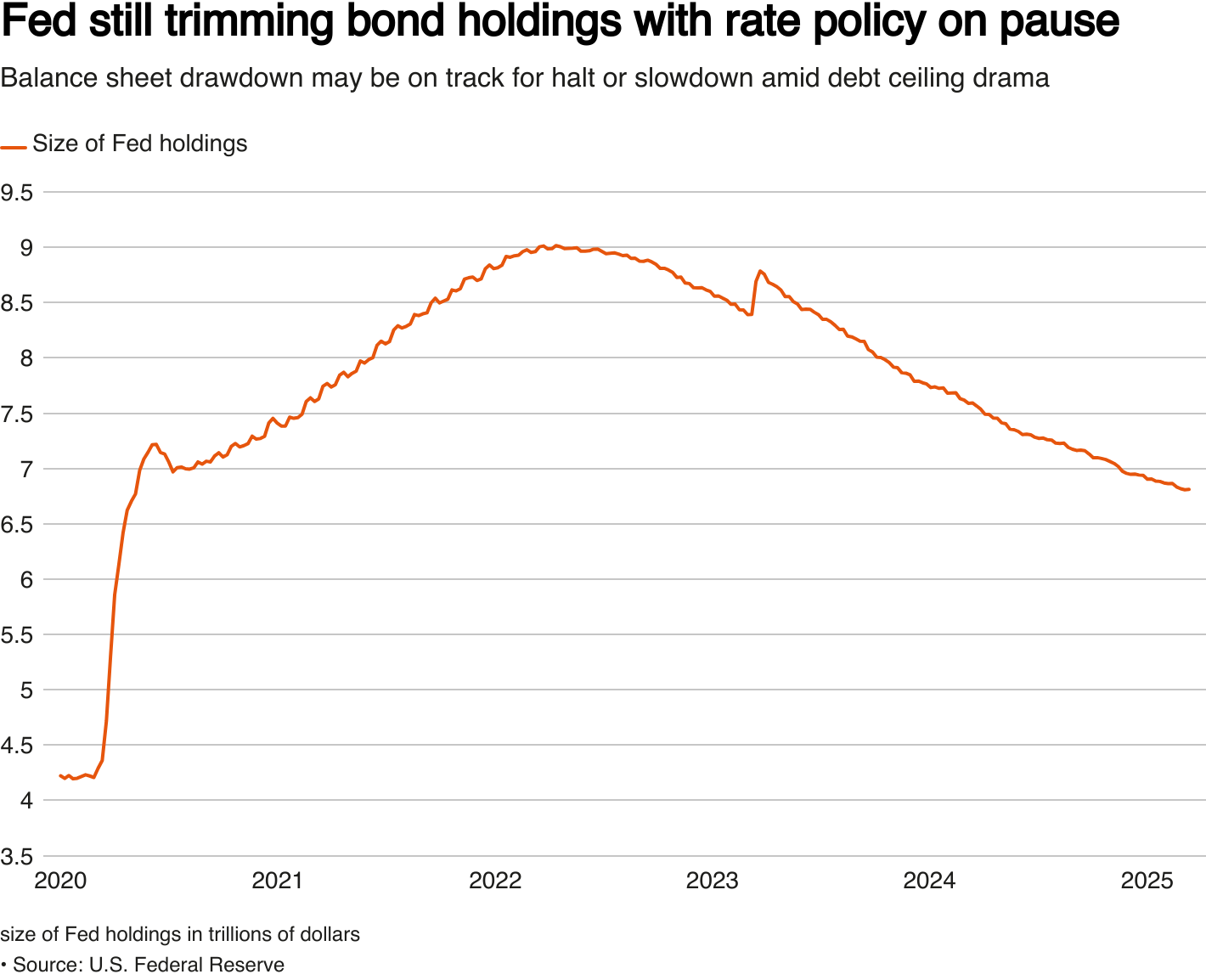 华盛顿,3月19日(路透社)- 美联储在周三表示,将减缓其庞大资产负债表的缩减步伐,因为在政府借款上限持续僵局中面临评估市场流动性的挑战。