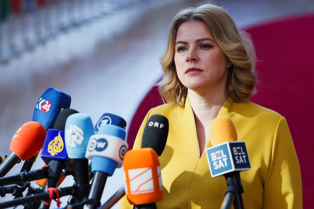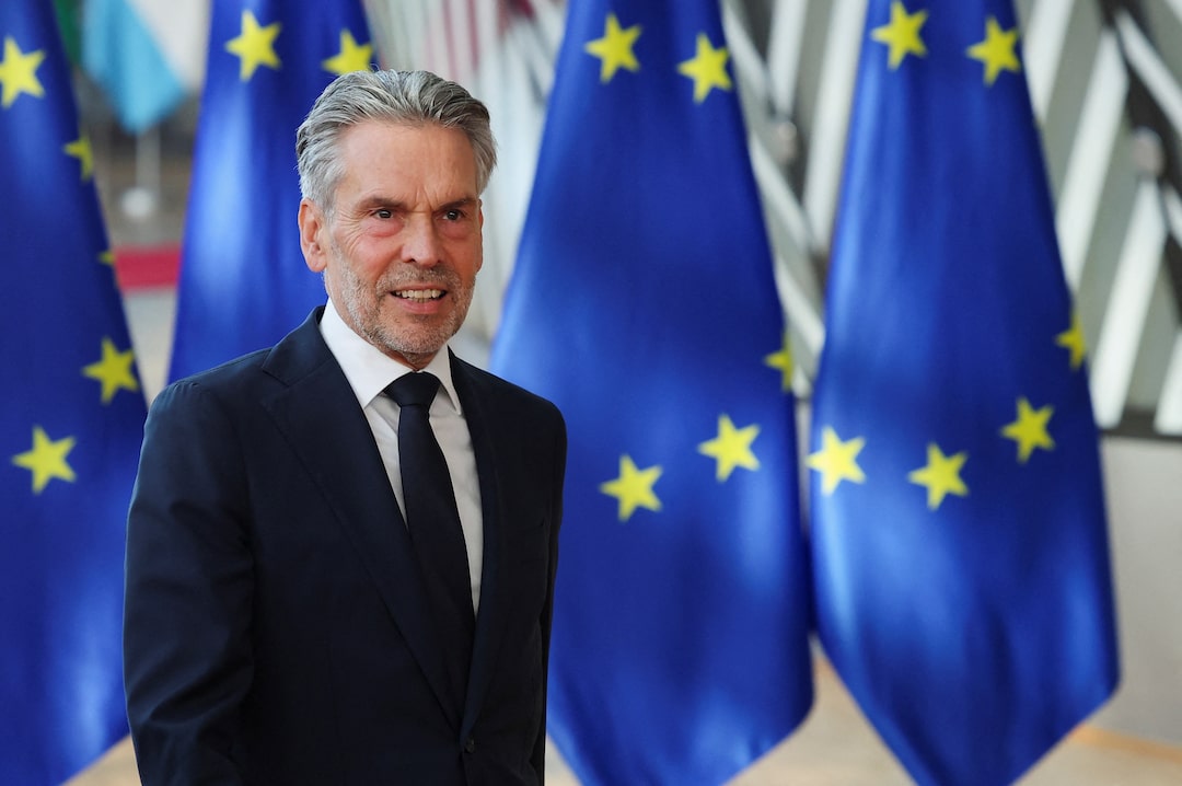 第1项,共6项 奥地利总理克里斯蒂安·斯托克在比利时布鲁塞尔出席欧盟峰会时与媒体交谈,2025年3月20日。路透社/斯蒂芬妮·勒科克