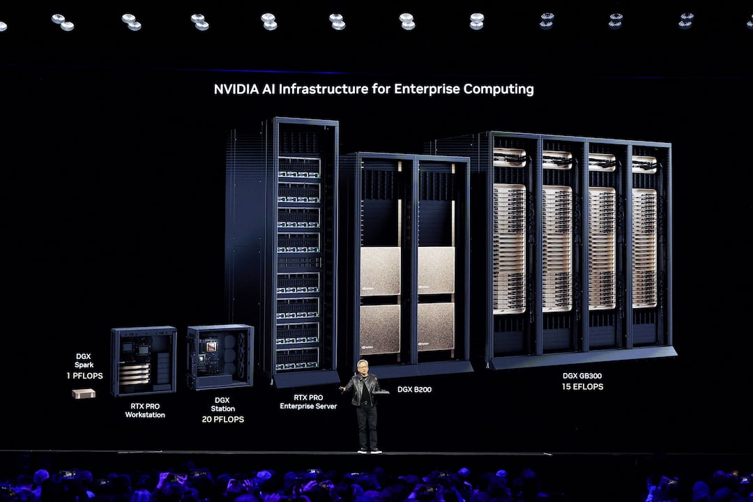 两项中的第一项,Nvidia首席执行官黄仁勋在美国加利福尼亚州圣荷西的SAP中心发表Nvidia GPU技术大会的主题演讲,2025年3月18日。路透社/布列塔尼·霍赛-斯莫尔/档案照片
