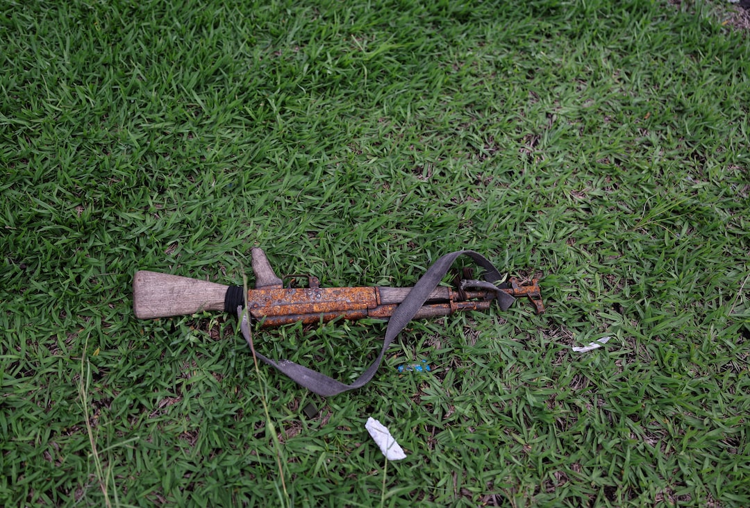 第1项,共5项 一把被遗弃的步枪属于刚果民主共和国武装部队(FARDC),在M23叛军占领该镇后,位于刚果民主共和国戈马机场,2025年3月19日。路透社/Zohra Bensemra