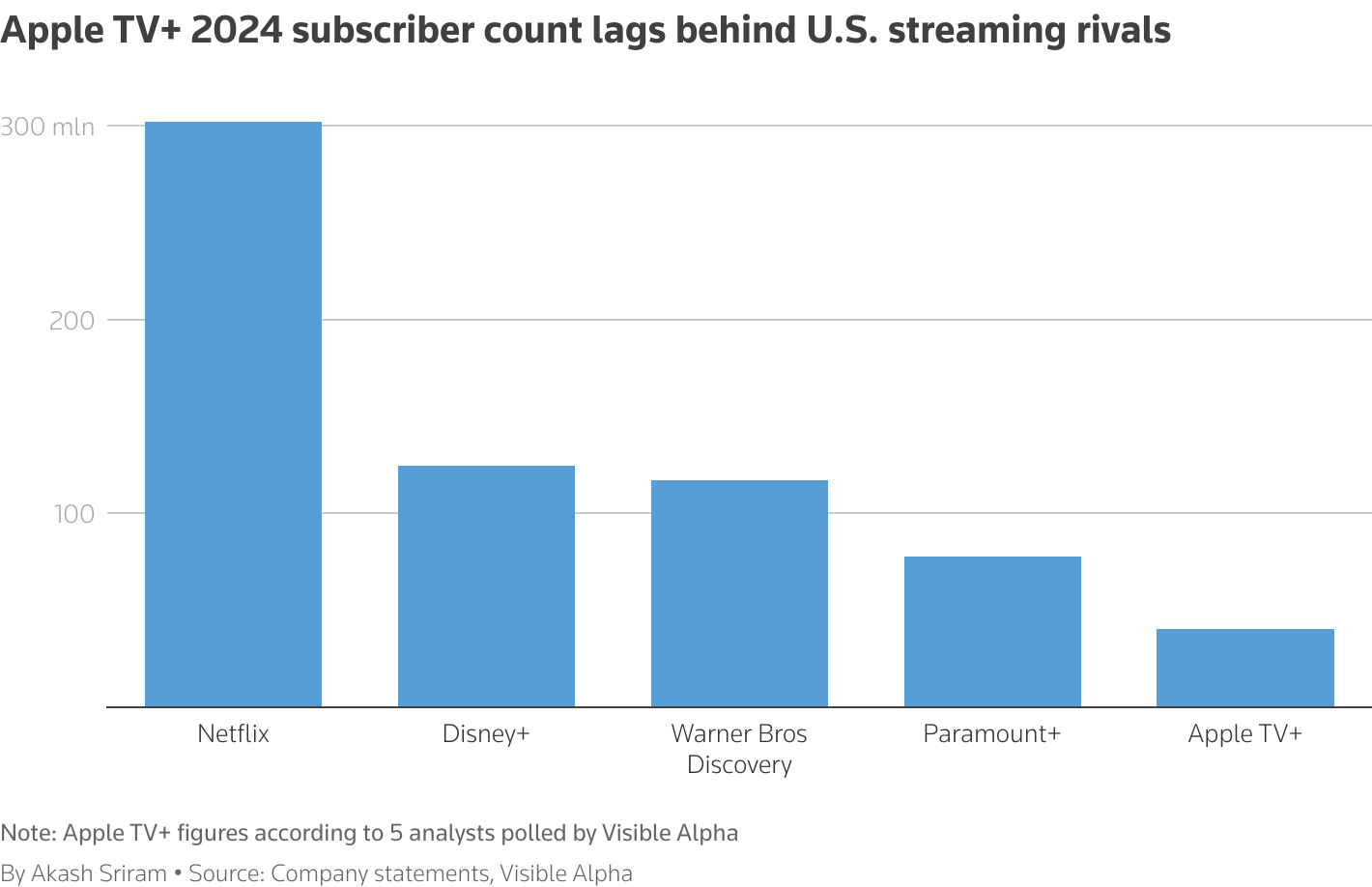 《信息》报道:苹果在流媒体服务上每年损失超过10亿美元,路透社