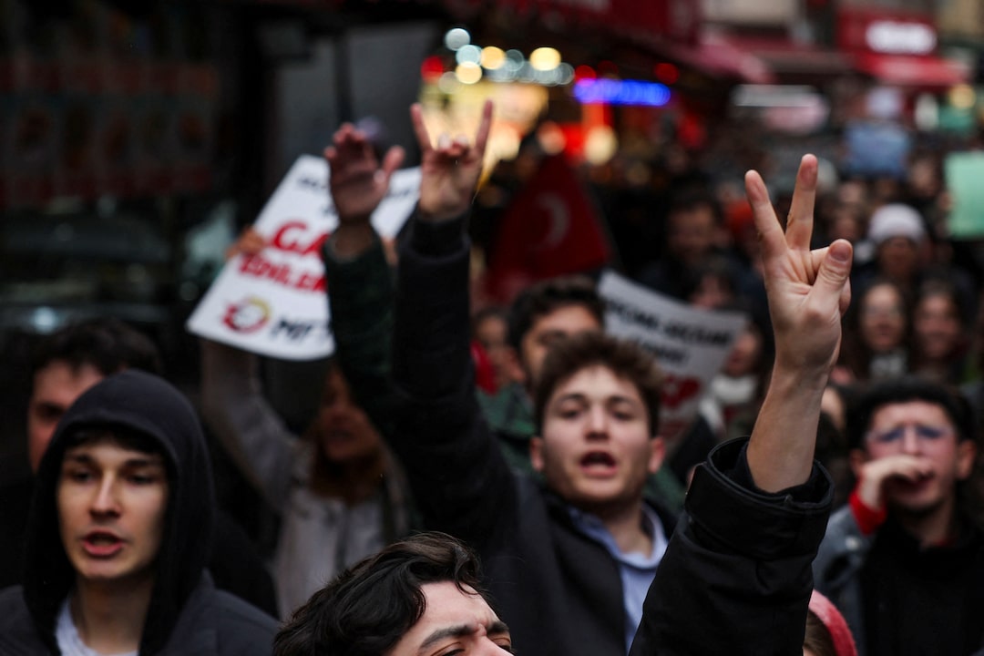 视图显示了一张海报,上面是伊斯坦布尔市长埃克雷姆·伊马莫格鲁的照片,作为加拉塔萨雷大学的学生在土耳其伊斯坦布尔抗议他的拘留,2025年3月20日。路透社/乌米特·贝克塔斯3月20日(路透社) - 被拘留的伊斯坦布尔市长埃克雷姆·伊马莫格鲁似乎在周四的一条社交媒体帖子中向土耳其总统塔伊普·埃尔多安发表讲话,指责他腐败,并呼吁他执政党和司法机构的成员反对不公正。“你不能也不应该保持沉默,”伊马莫格鲁在X上写道,指的是他的拘留。“这些事件已经超越了我们的政党和政治理想。这个过程现在关系到我们的国家,尤其是你们的家庭。发声的日子已经到来。”