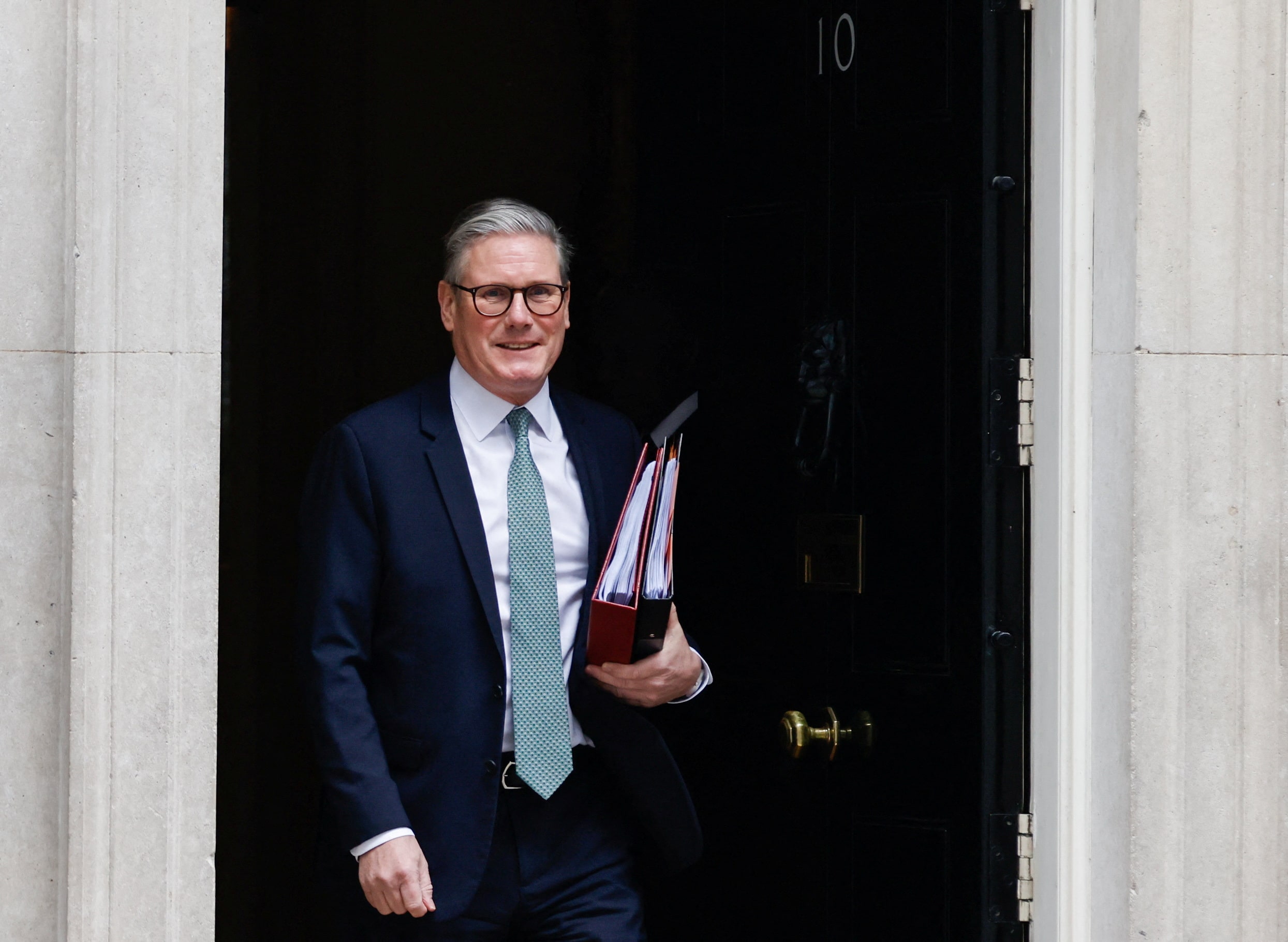 英国首相基尔·斯塔默于2025年3月19日离开唐宁街10号,前往伦敦议会参加首相问答。伦敦,3月20日(路透社) - 英国首相基尔·斯塔默周四表示,英国及其盟友能够立即做出反应,如果俄罗斯和乌克兰达成和平协议,这一点非常重要。