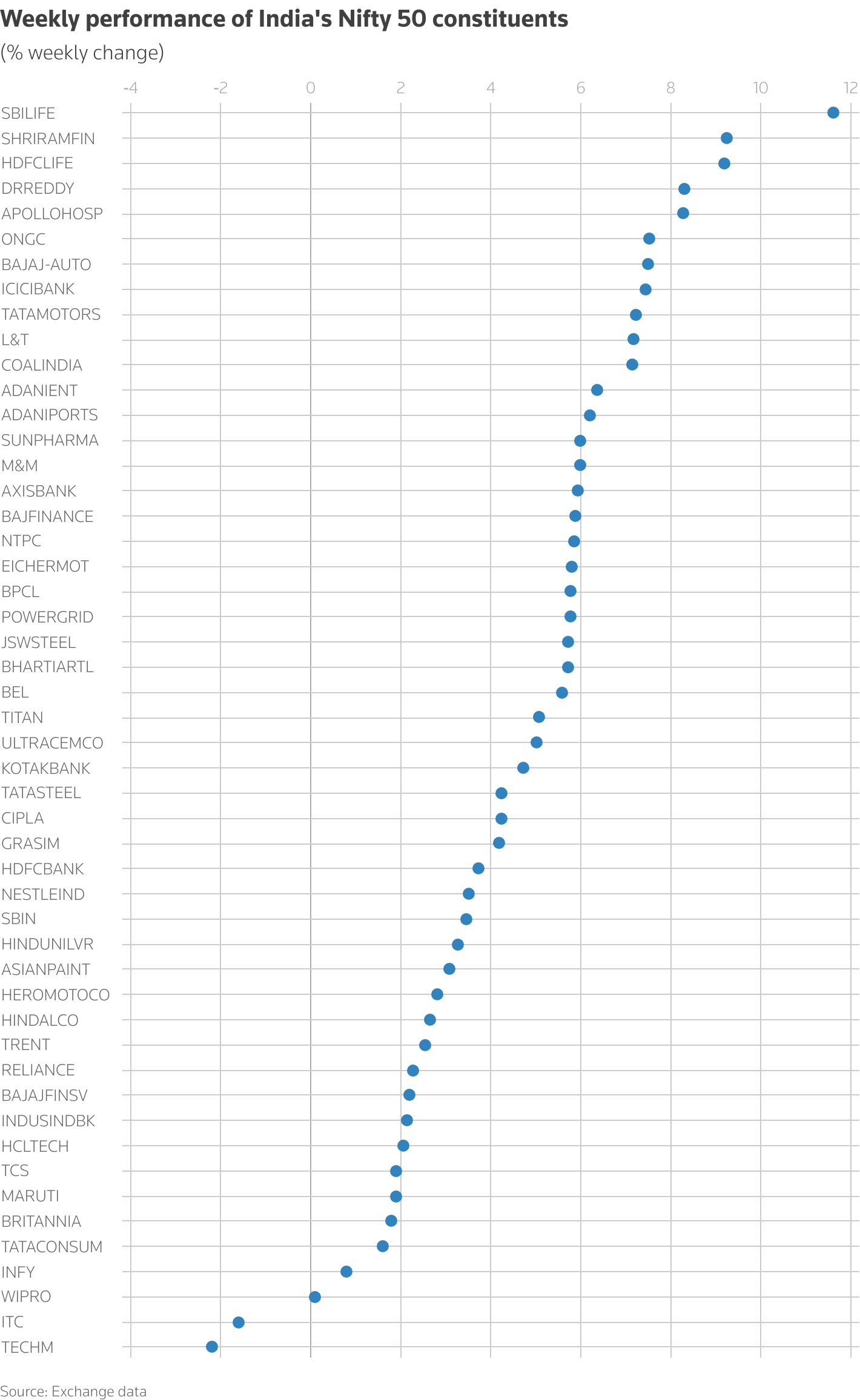 印度Nifty 50成分股的周表现