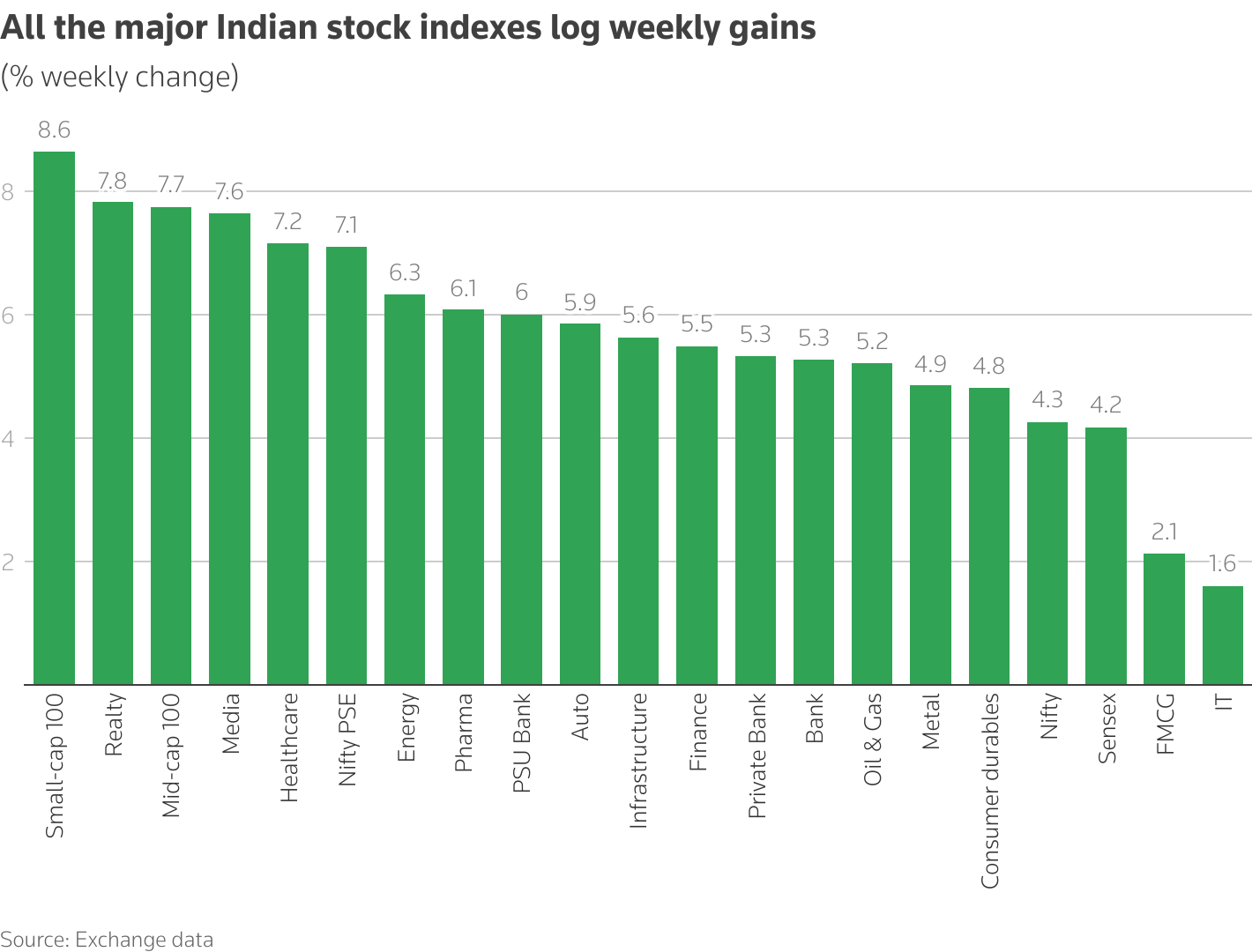 所有主要的印度股票指数都录得周度涨幅