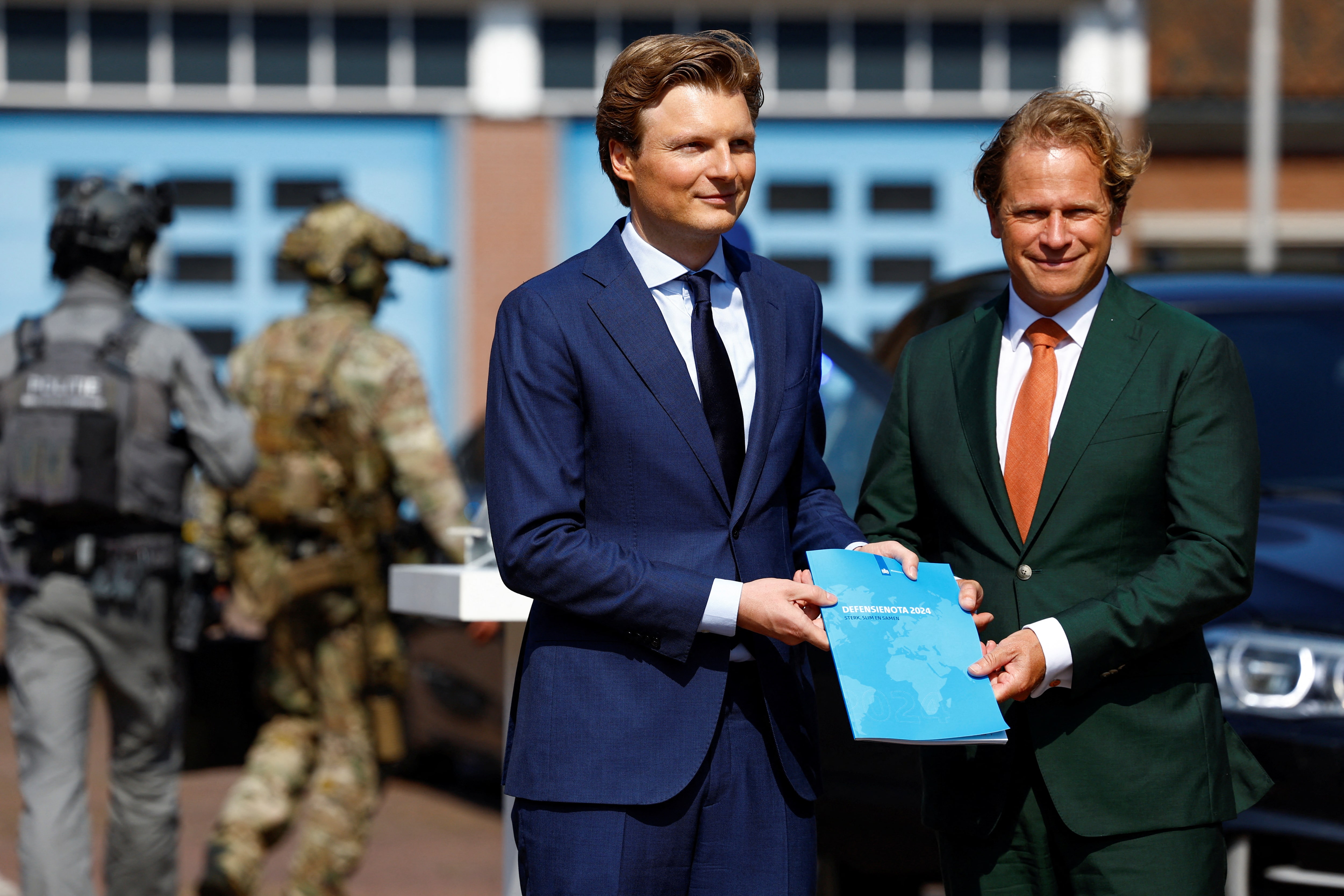 荷兰国防部长鲁本·布雷克尔曼斯和荷兰国防国务秘书吉斯·图因曼手持一份国防备忘录,荷兰政府在俄罗斯-乌克兰冲突后提出将国防支出提高到GDP的2%的计划,地点在荷兰阿默斯福特,2024年9月5日。路透社/皮罗什卡·范·德·沃乌/档案照片阿姆斯特丹,3月21日(路透社) - 荷兰希望将其军队人员从74,000人增加到200,000人,特别关注扩大预备役能力,荷兰公共广播公司NOS援引接近此事的消息来源报道。