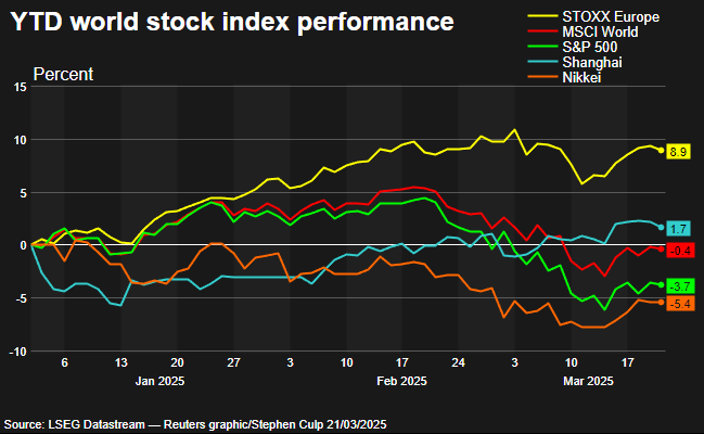 全球市场 华尔街与欧洲股市一起下跌;因关税不确定性美元上涨 | 路透社