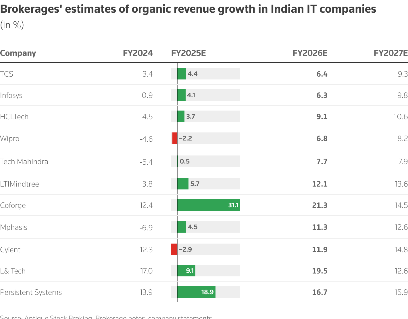 Kotak Institutional Equities的分析师表示,需求复苏放缓和财政2025年弱势的重大交易流将导致印度一线IT在财政2026年来自重大交易的增量收入减少。“公司还将面临来自生成AI采用早期阶段的净逆风,”他们说。