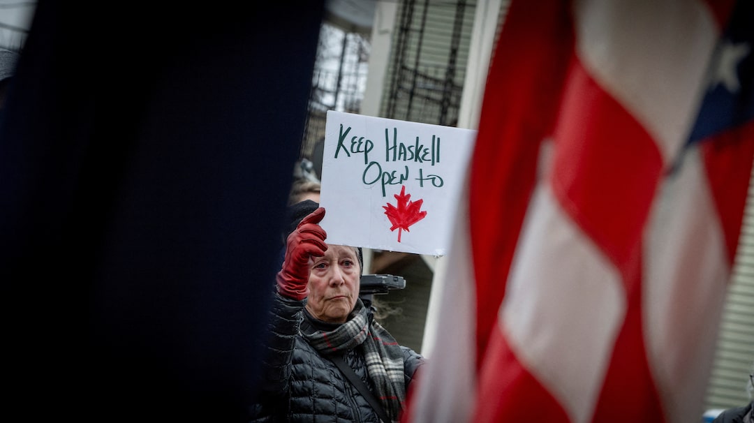 佩妮·托马斯(Penny Thomas)在佛蒙特州纽波特的德比线(Derby Line)站在美国一侧,参加斯坦斯特德市市长关于关闭加拿大通往哈斯克尔免费图书馆的新闻发布会,该图书馆位于美加边界上,从加拿大斯坦斯特德可见,2025年3月…阅读更多斯坦斯特德,魁北克,3月21日(路透社) - 美国当局周五表示,他们将关闭加拿大通往一座跨越美加边界的图书馆的通道,引发了一个魁北克小镇的批评,那里的人们长期以来一直享有轻松进入该空间的便利。