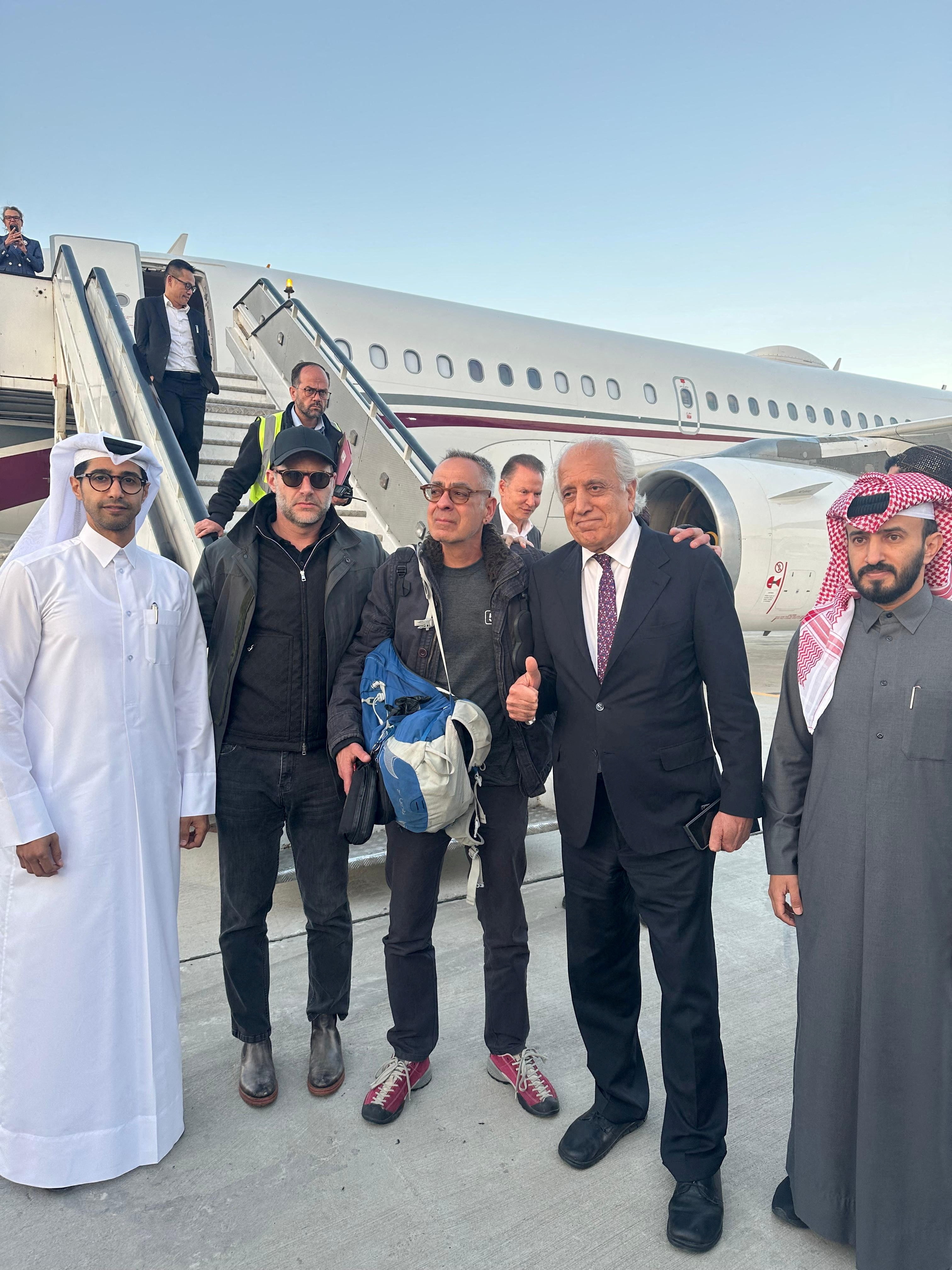 美国公民乔治·格莱兹曼在喀布尔机场,刚刚从阿富汗拘留中获释,与美国人质特使亚当·博赫勒、前美国阿富汗和解特别代表扎尔梅·哈利勒扎德及卡塔尔外交官在一起,准备前往卡塔尔多哈,地点在阿富汗喀布尔,时间是2025年3月20日。卡塔尔的… 阅读更多华盛顿,3月21日(路透社) - 乔治·格莱兹曼,一名在阿富汗被拘留超过两年的美国人,在被塔利班释放后,于周五抵达美国,与妻子团聚,并受到包括他的前囚友在内的欢迎派对的迎接。