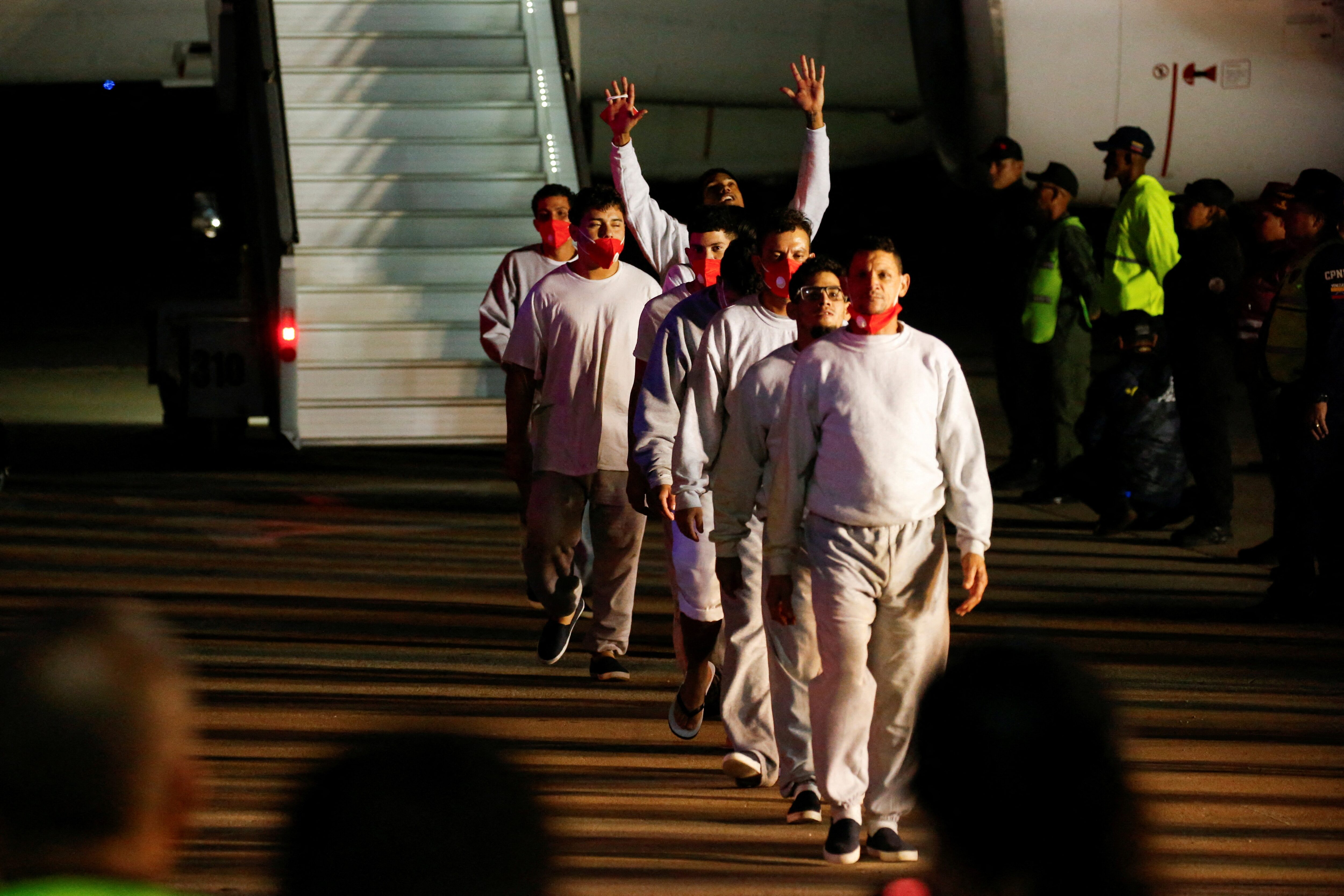 从关塔那摩湾经洪都拉斯飞来的委内瑞拉移民,在2025年2月20日抵达委内瑞拉拉瓜伊拉州的西蒙·玻利瓦尔国际机场后走路,乘坐驱逐航班。路透社/莱昂纳多·费尔南德斯·维洛里亚 今日图片加拉加斯,3月21日(路透社) - 委内瑞拉内政部长迪奥斯达多·卡贝略周五表示,根据美国媒体公布的名单和自己的数据,从美国转移到萨尔瓦多的委内瑞拉人中没有与阿拉瓜列车帮派有关联,正如华盛顿所称。