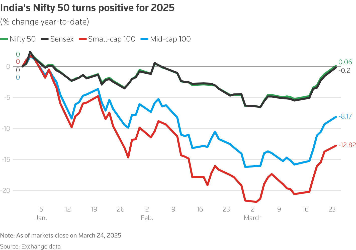 印度的Nifty 50在外资回归和抄底买入下抹去2025年的损失 | 路透社