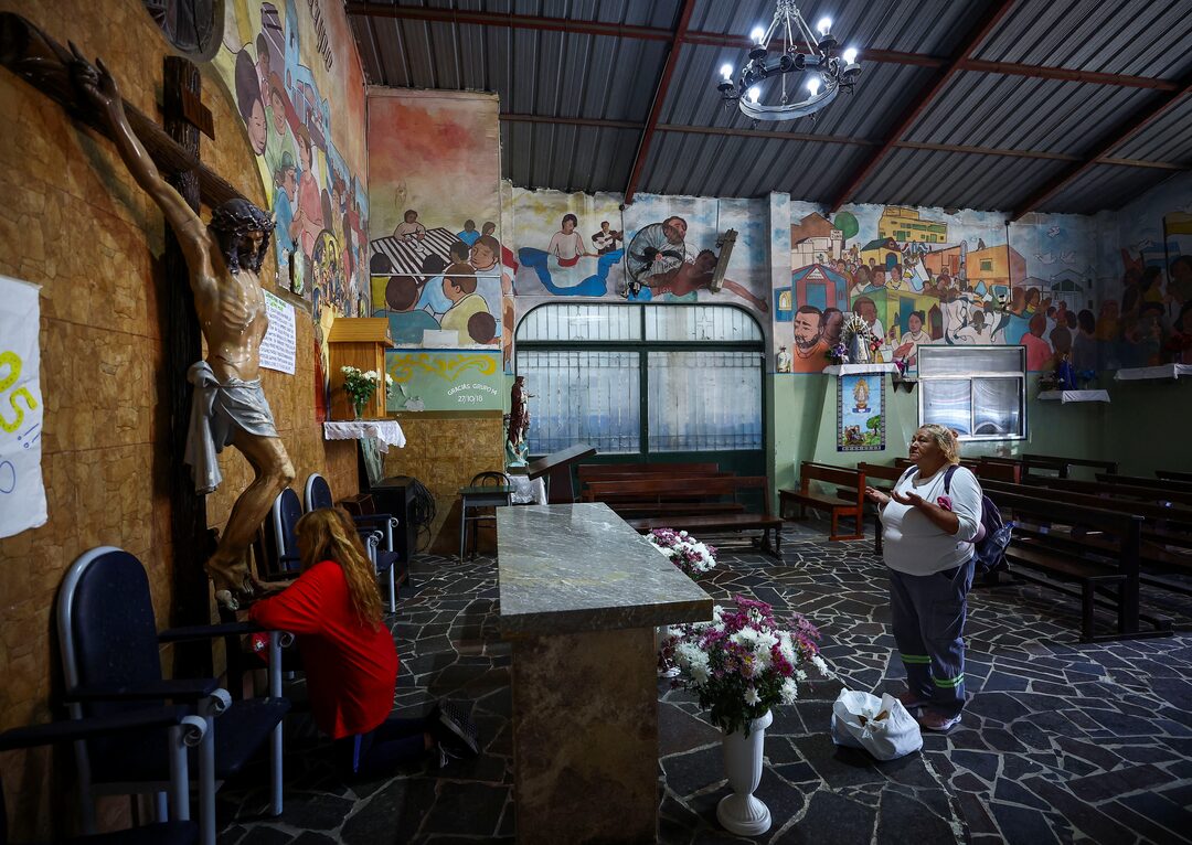 教皇方济各的图像出现在维尔根·德·卡阿库佩教堂的办公室里,教皇方济各,当时年轻的豪尔赫·马里奥·贝尔戈里奥,曾定期造访此地,2025年3月10日。路透社/阿古斯丁·马尔卡里安“对于21号别墅的居民来说,教皇方济各是家里的一部分,”巴拉卡斯的米拉格罗斯圣母教区神父洛伦佐“托托”·德·维迪亚说,并补充说,邻里因他的病情而“深感不安”。