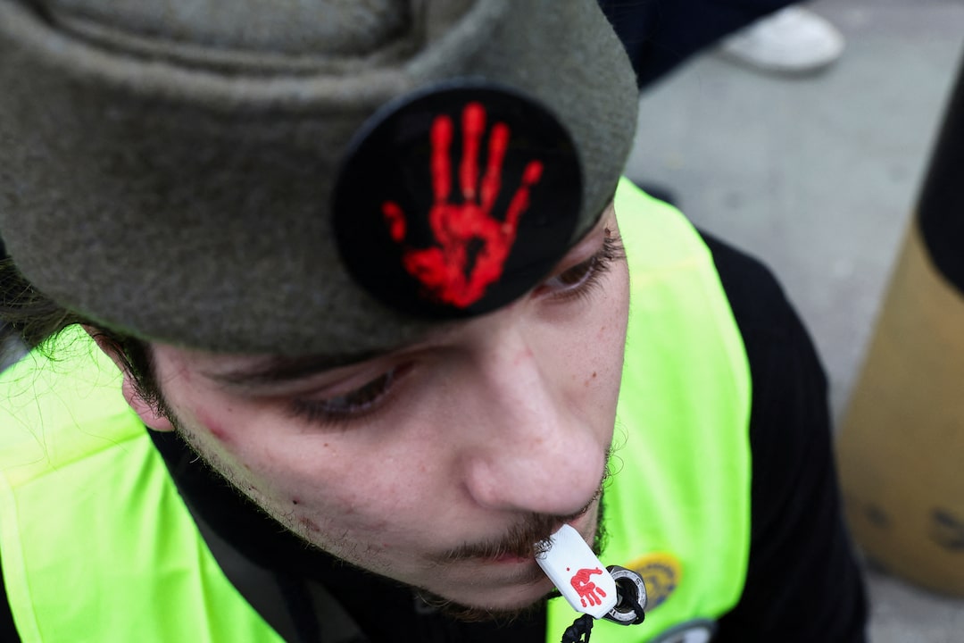第1项,共6项 学生抗议政府将一个地点租给美国总统唐纳德·特朗普的女婿贾里德·库什纳,用于在塞尔维亚贝尔格莱德的前南斯拉夫人民军总部建设酒店项目,该总部在1999年北约轰炸中被摧毁,2025年3月24日。路透社/Djordje Kojadinovic