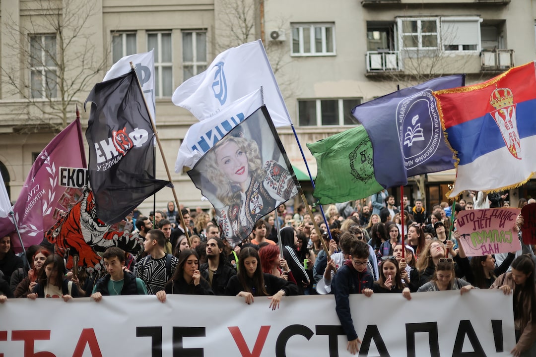 周一的抗议活动是由贝尔格莱德国立大学的学生发起的,他们自12月初以来一直在阻止各自学院的课程,并在过去四个月中领导反政府抗议。