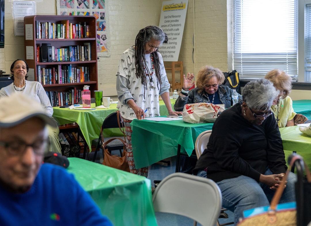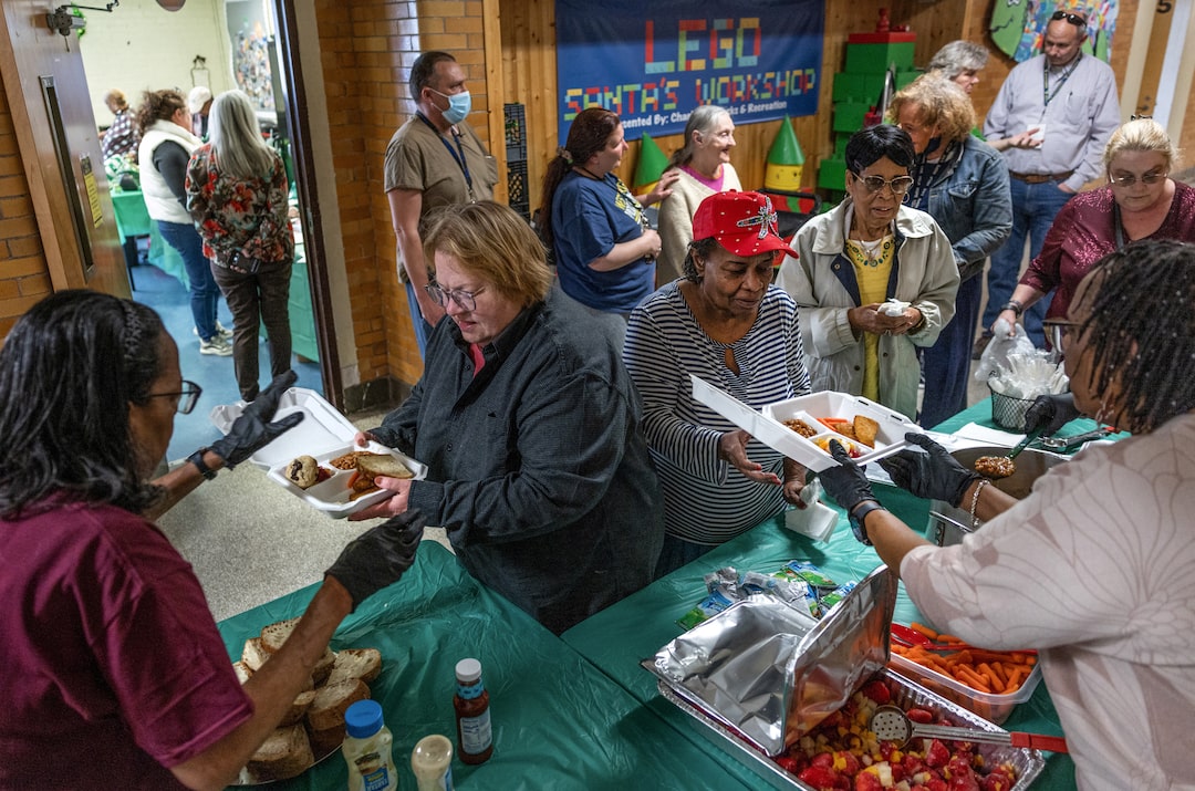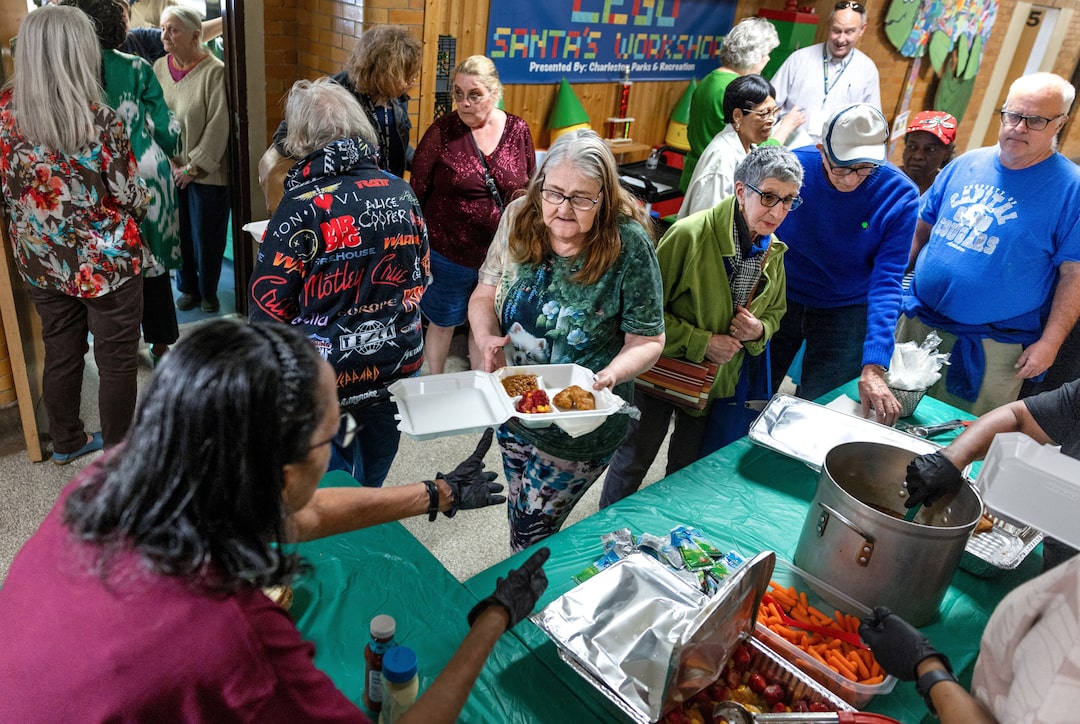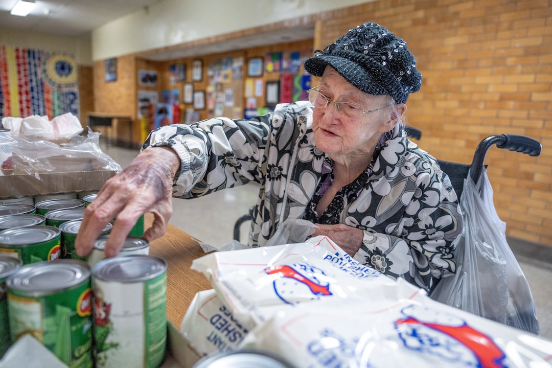 在查尔斯顿的东区资源中心,78岁的玛莎·罗斯在最近的一次老年餐会上查看了三位一体餐桌的稀少捐赠,注意到这远低于平常。