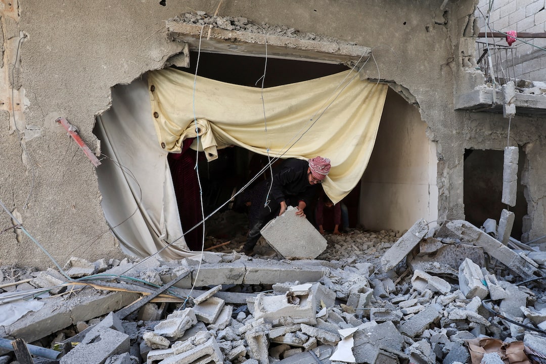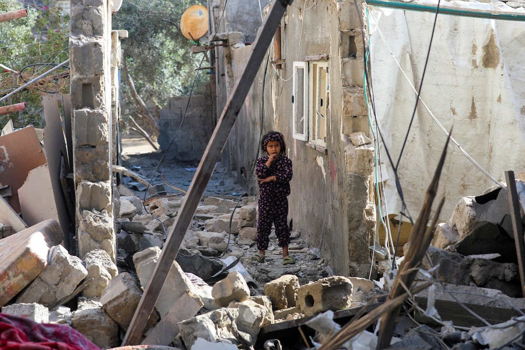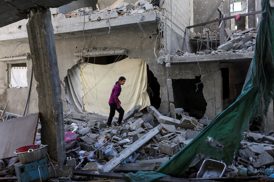 第1项,共6项 一名巴勒斯坦女孩在加沙地带中部的德尔阿尔巴拉赫检查以色列空袭造成的损害。路透社/拉马丹·阿贝德