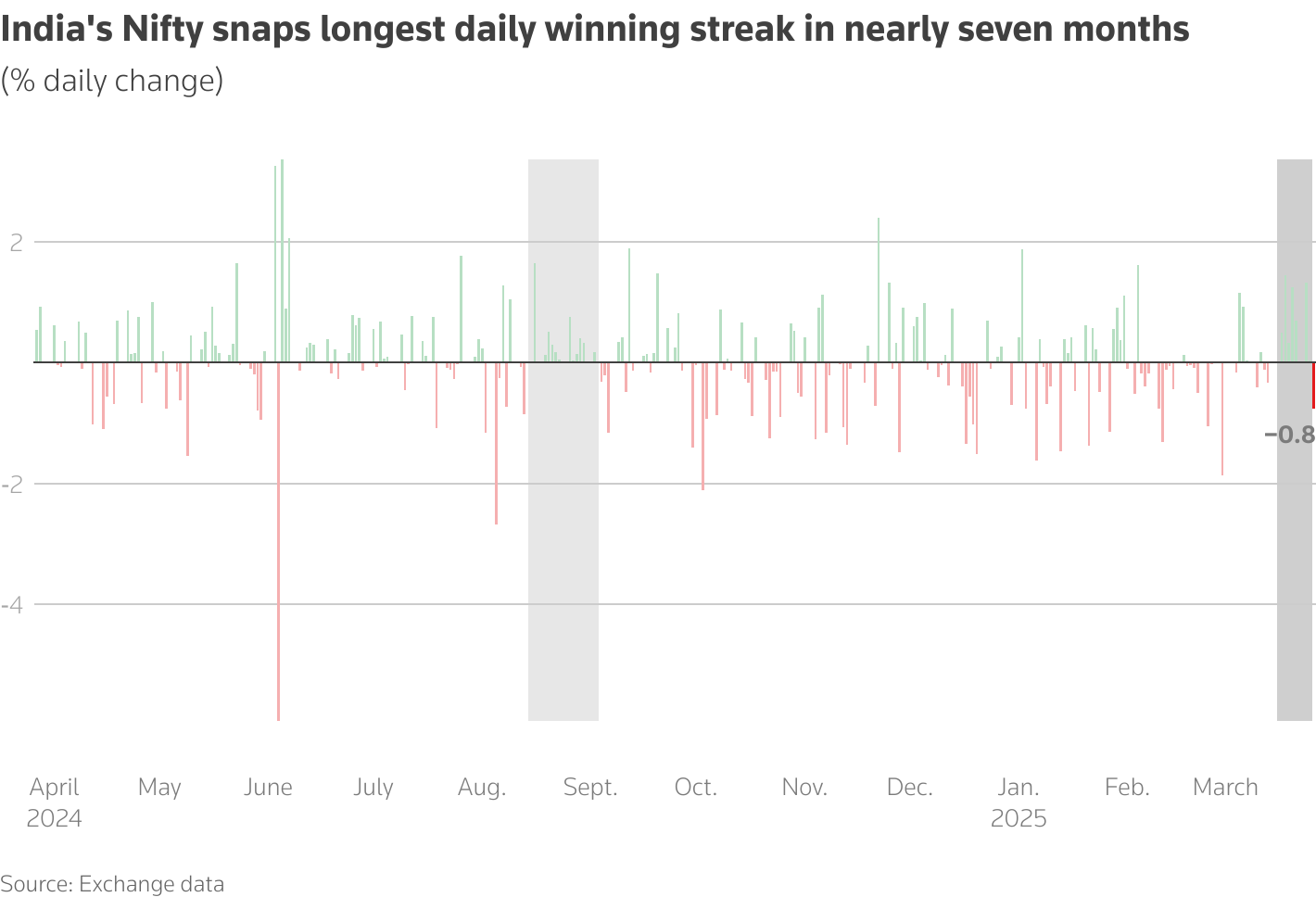 利润兑现打击印度股市反弹,关税阴影笼罩 | 路透社