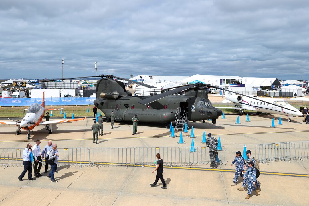 新加坡共和国空军(RSAF)的CH-47奇努克直升机在2025年3月26日的澳大利亚国际航空展上展出。路透社/霍莉·亚当斯