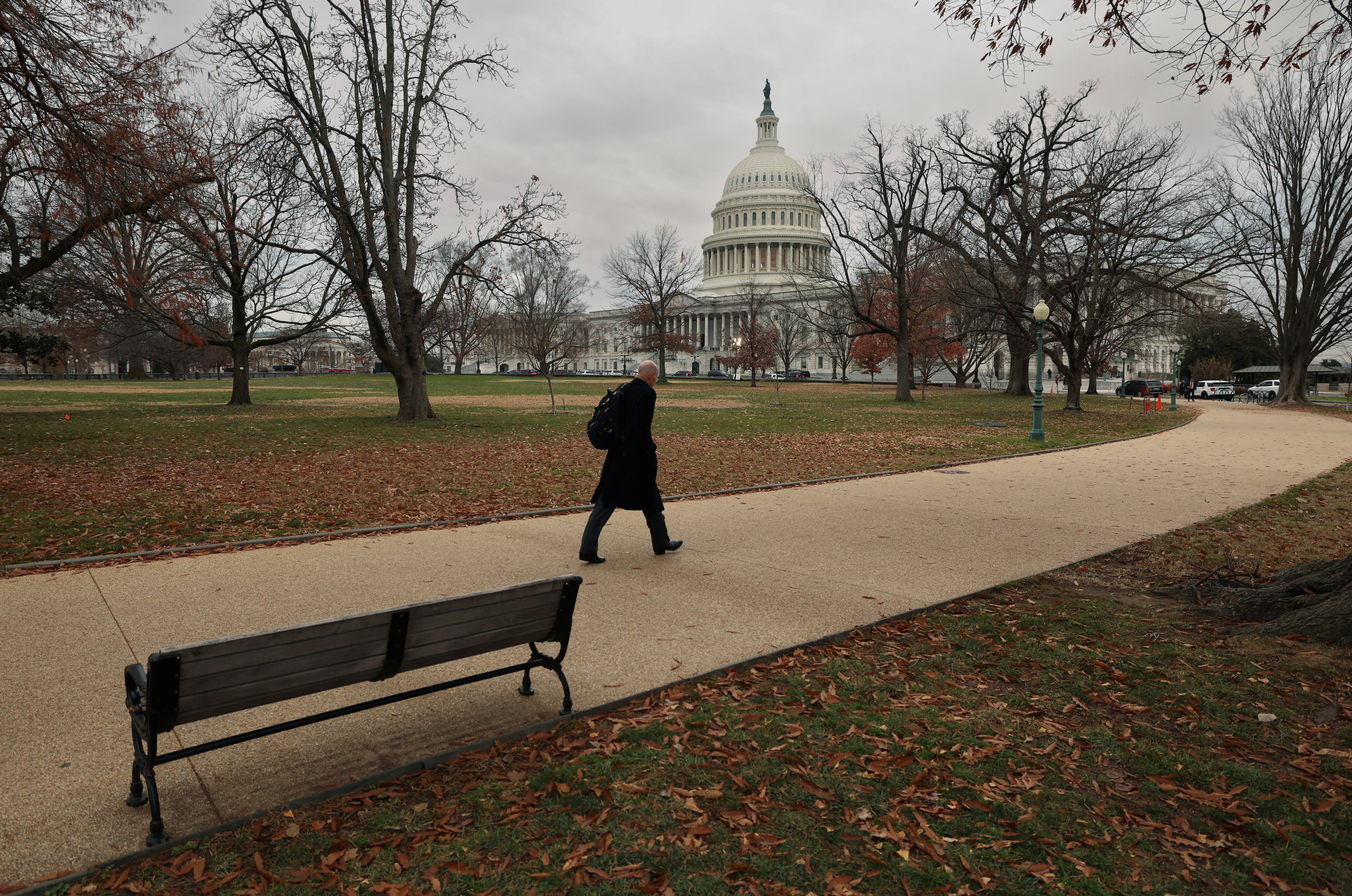 一名男子走向国会大厦,在假期期间潜在政府关门的日子里,由于唐纳德·特朗普支持的支出法案在美国众议院未能通过,华盛顿国会山,2024年12月20日。路透社/凯文·拉马奎/档案照片华盛顿,3月26日(路透社)- 美国政府可能会在8月尽早面临违约其36.6万亿美元债务的风险——或者甚至可能在5月底之前——除非国会采取行动提高国家债务上限,非党派的国会预算办公室周三预测。