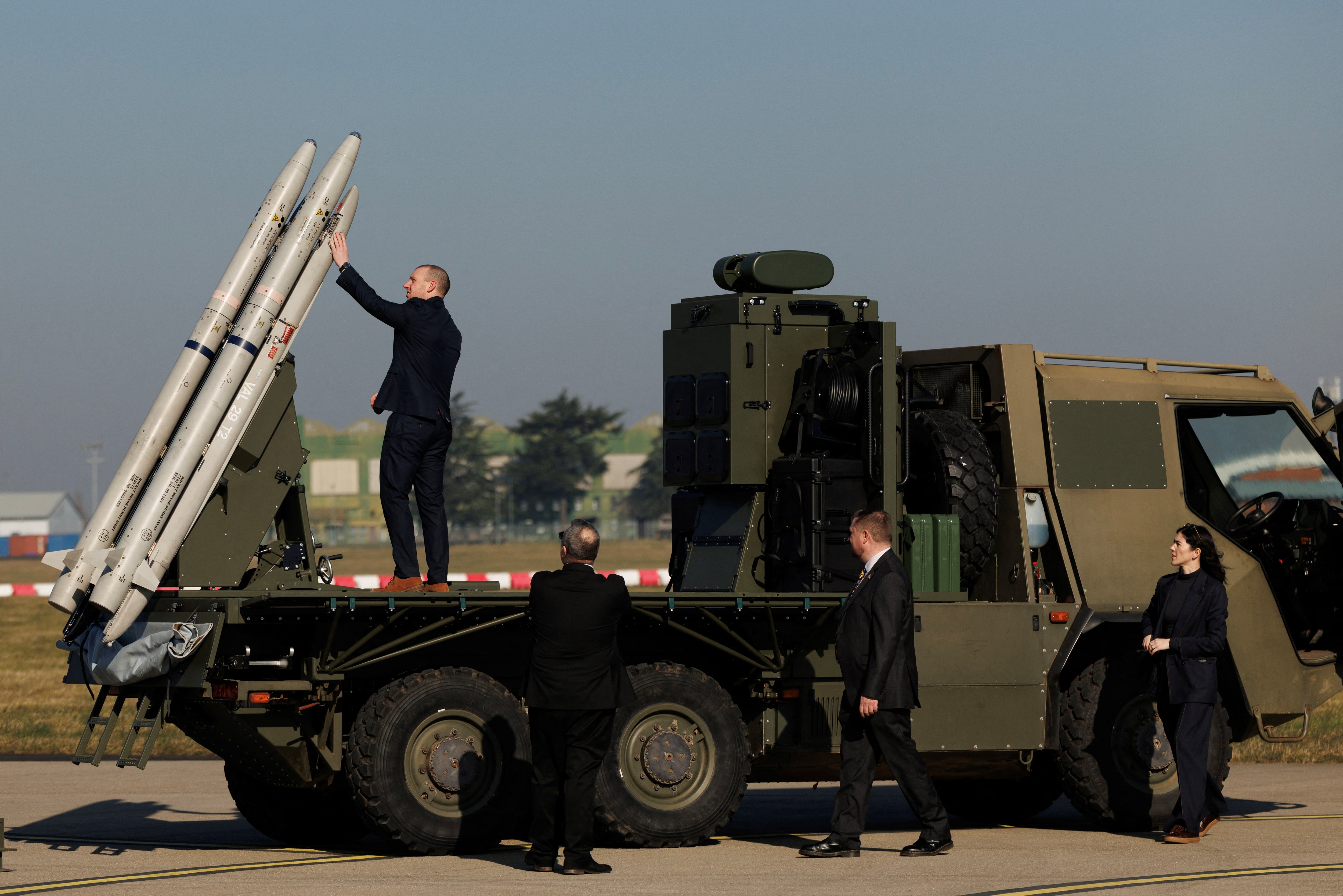 ASRAAM导弹在卡车后面静静地伫立,英国财政大臣瑞秋·里夫斯于2025年3月6日在英国鲁伊斯利普的北霍尔特皇家空军基地与国防供应商会面。丹·基特伍德/池 via REUTERS伦敦,3月26日(路透社) - 英国财政大臣瑞秋·里夫斯表示,她希望国家成为“国防工业超级大国”,并在周三的预算更新中向该行业注入额外的22亿英镑(28亿美元)。