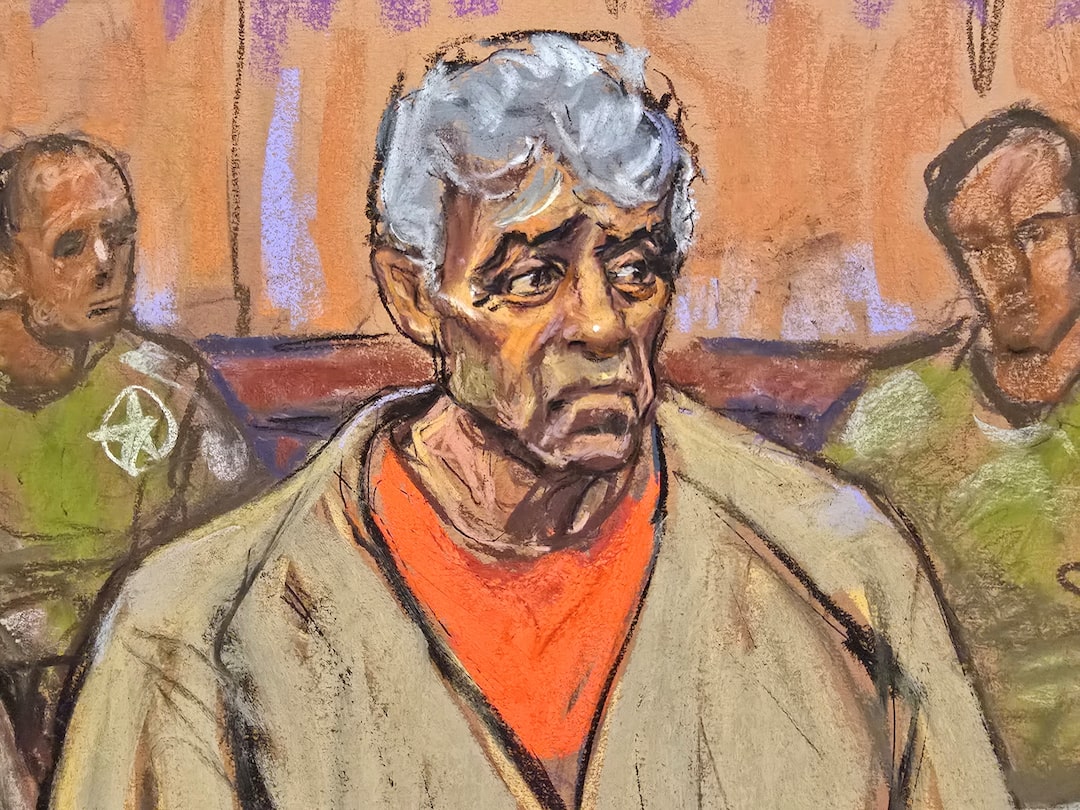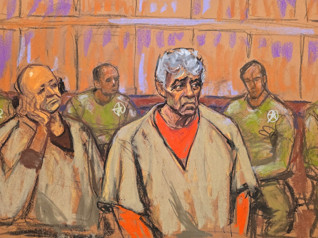 第1项,共3项 被指控的墨西哥毒枭拉斐尔·卡罗·金特罗在美国纽约市布鲁克林联邦法院的听证会上出现,时间为2025年3月26日,此为法庭素描。路透社/简·罗森伯格
