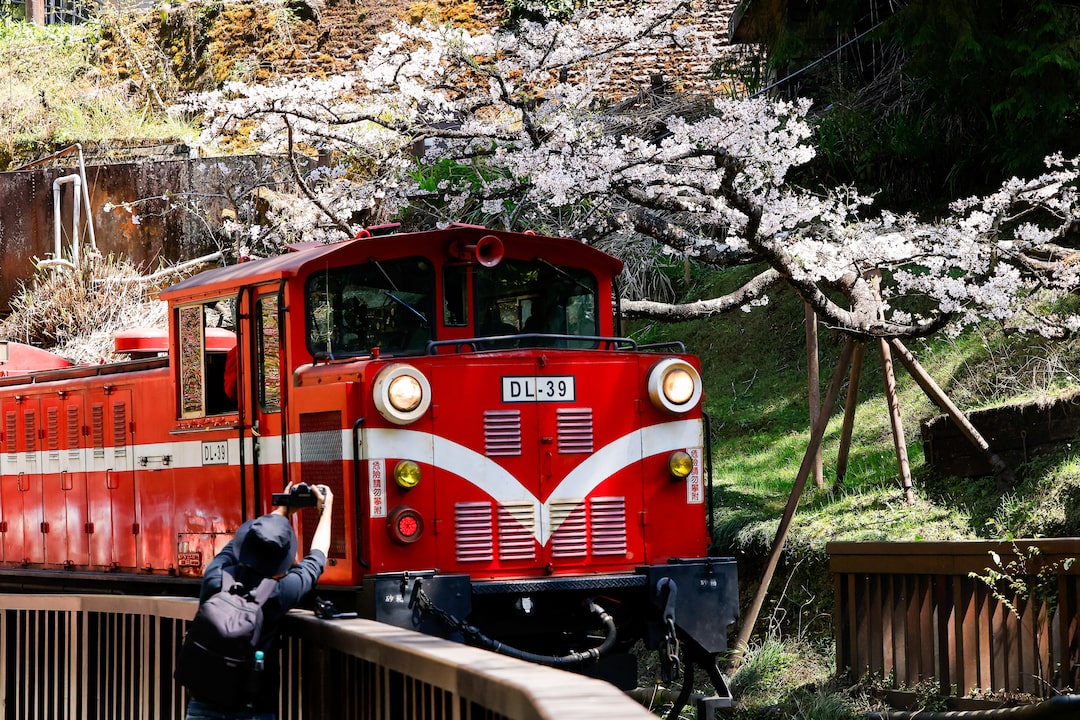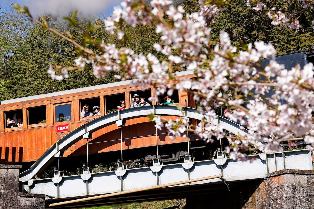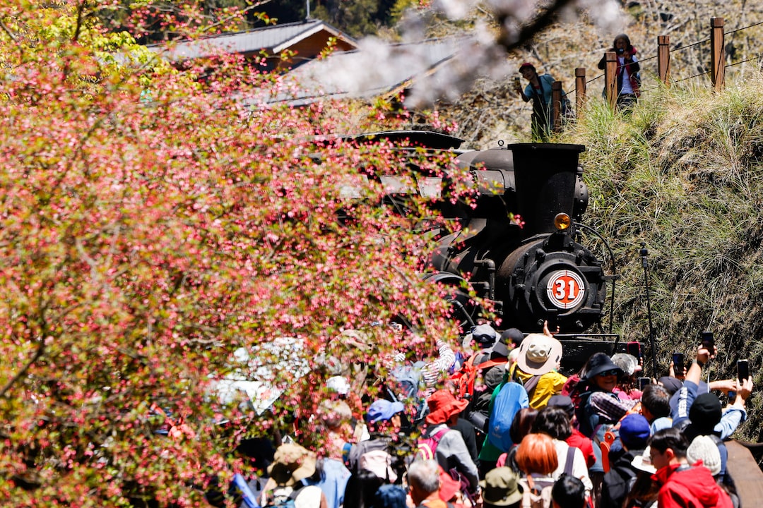 这列特别的樱花主题火车在岛南部的阿里山上缓缓行驶,进行了一次长达六小时的风景之旅,沿着一条源自日本殖民时期的遗产铁路,最初是一条伐木铁路。