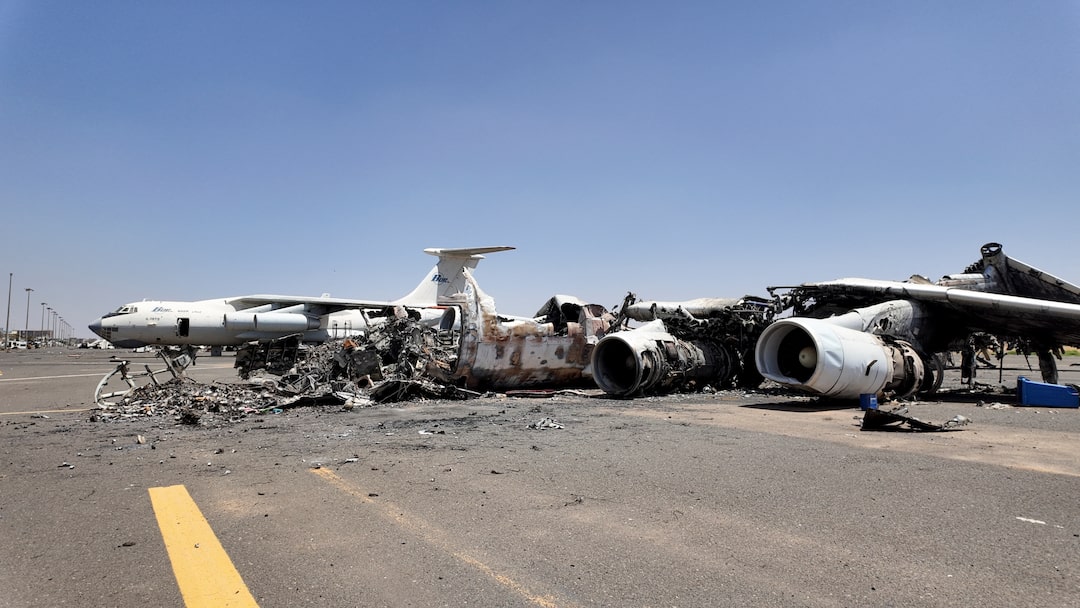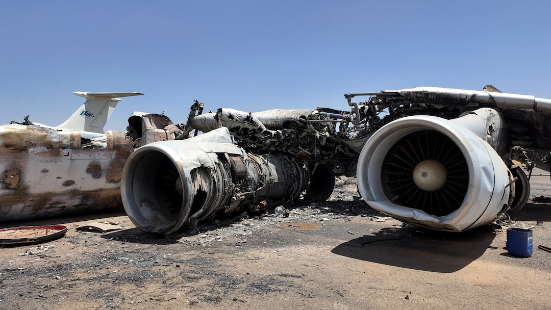 第1项,共9项 在苏丹喀土穆机场的停机坪上,毁坏飞机的残骸的总体视图,此时苏丹军队加深了对首都喀土穆的控制,来自快速支援部队(RSF),日期为2025年3月27日。路透社/艾尔·塔耶布·西迪格