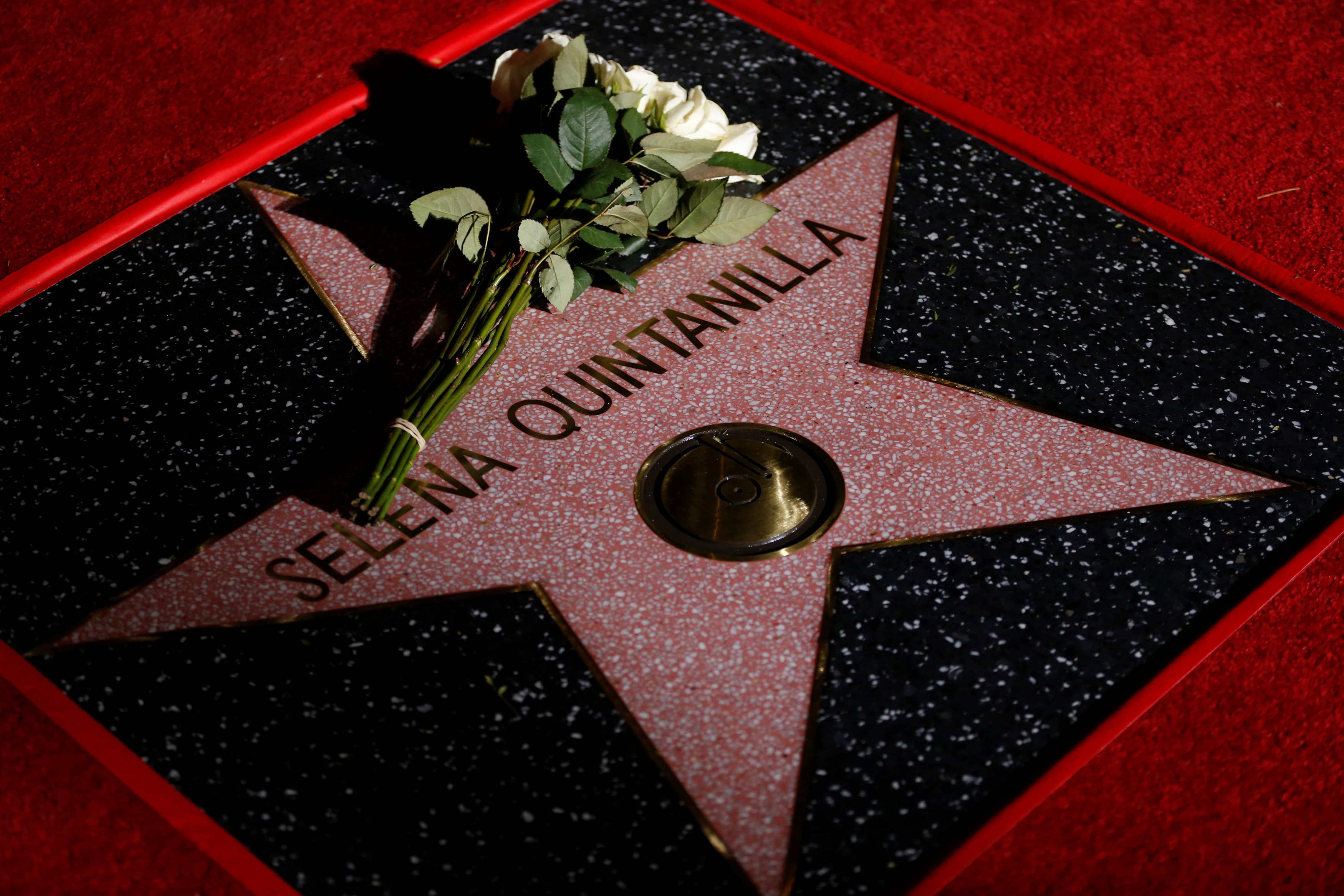 花朵在已故歌手塞莱娜·昆塔尼利亚-佩雷斯的星星上被看到,星星于2017年11月3日在美国加利福尼亚州洛杉矶的好莱坞星光大道上揭幕。路透社/马里奥·安祖尼/档案照片3月27日(路透社)- 拉丁流行歌星塞莱娜·昆塔尼利亚-佩雷斯的被定罪谋杀犯约兰达·萨尔迪瓦尔,因被称为特哈诺音乐女王,于周四被拒绝假释,德克萨斯州赦免和假释委员会宣布,这距离歌手去世30周年仅几天。