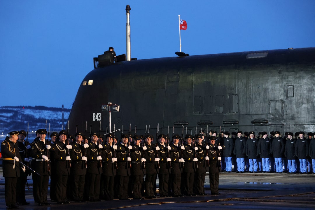 第1项,共6项 俄罗斯总统弗拉基米尔·普京于2025年3月27日在俄罗斯摩尔曼斯克访问核动力潜艇阿尔汉格尔斯克。Sputnik/谢尔盖·卡尔普欣/池 via REUTERS