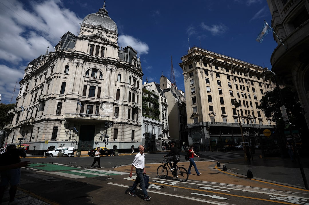 第1项,共4项 人们在阿根廷布宜诺斯艾利斯市中心穿行,靠近阿根廷总统府卡萨罗萨达,阿根廷经济部长路易斯·卡普托和国际货币基金组织(IMF)分别表示,阿根廷和IMF正在讨论一项贷款,时间为2025年3月27日,地点在阿根廷布宜诺斯艾利斯。路透社/阿古斯丁·马尔卡里安