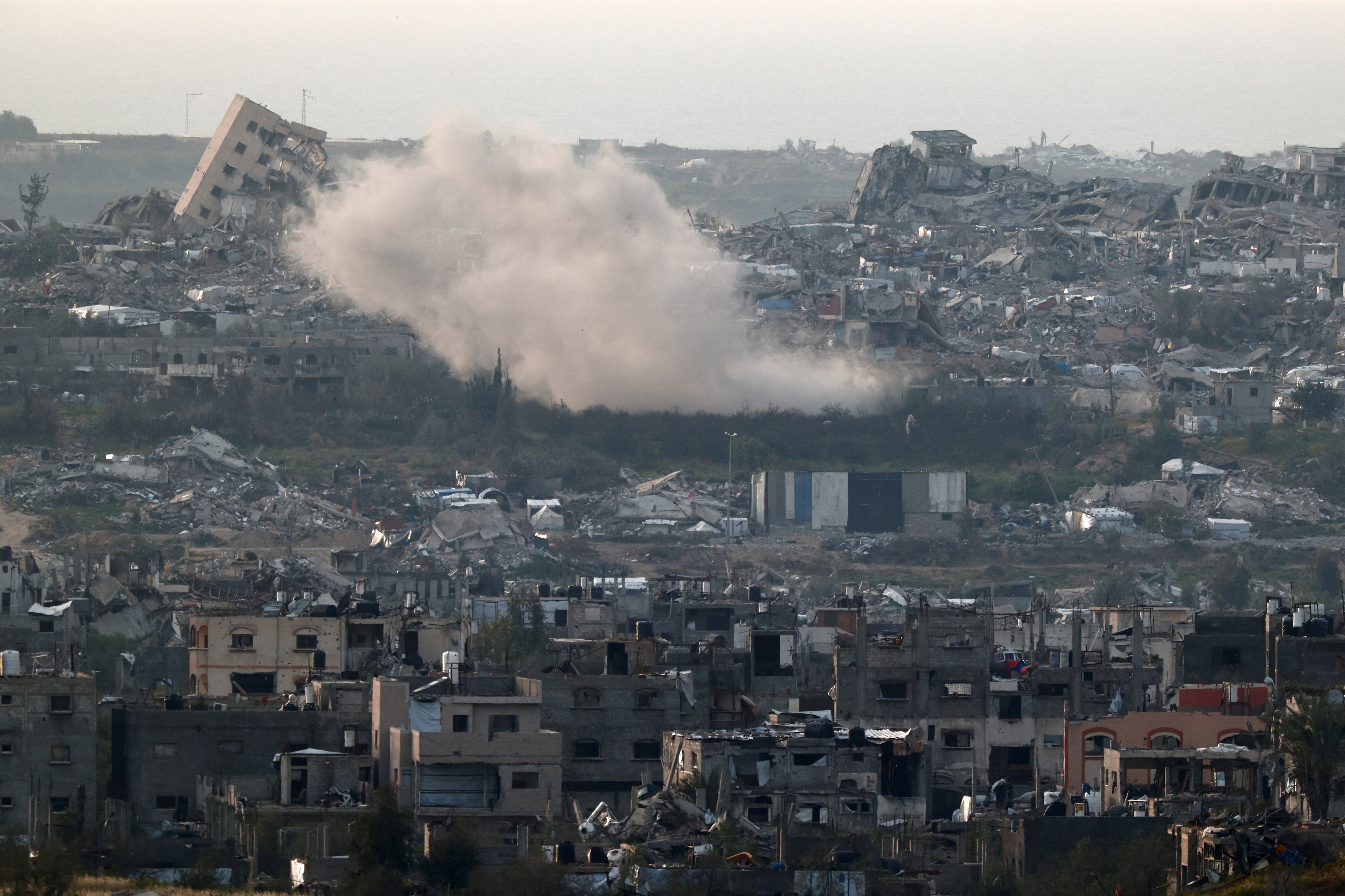 在以色列-加沙边界的以色列一侧,北加沙发生爆炸后烟雾升起,2025年3月25日。路透社/阿米尔·科恩开罗,3月27日(路透社)- 作为加沙停火谈判的调解者之一,埃及已从以色列那里获得了关于一项新停火提案的积极迹象,该提案将包括一个过渡阶段,安全消息人士周四告诉路透社。