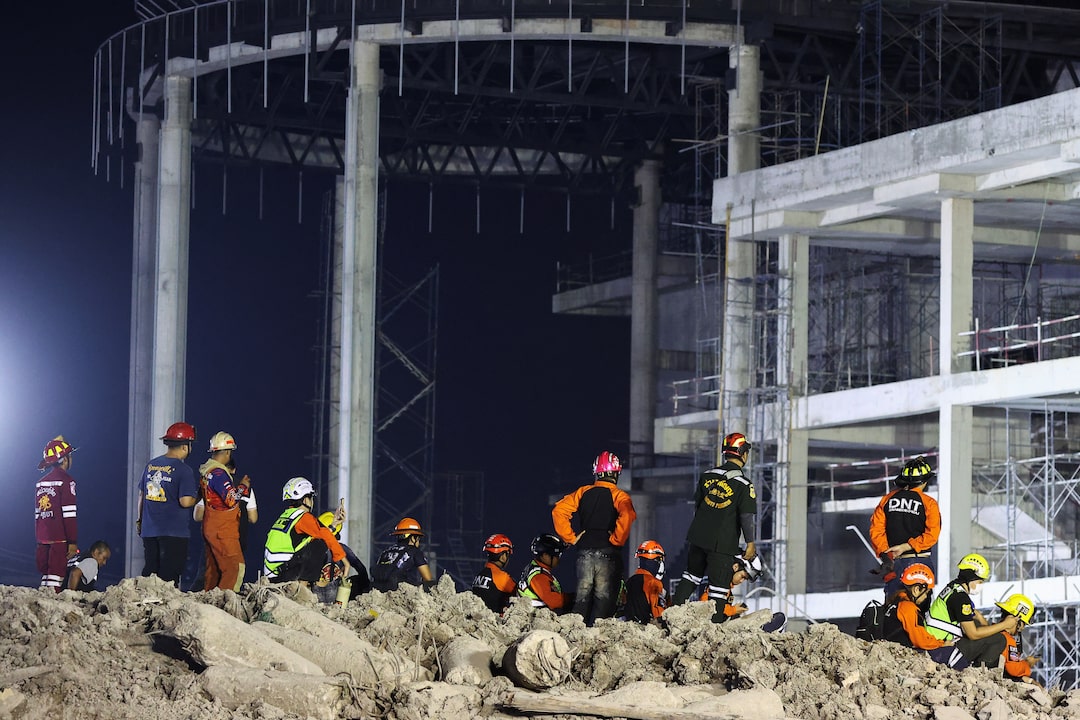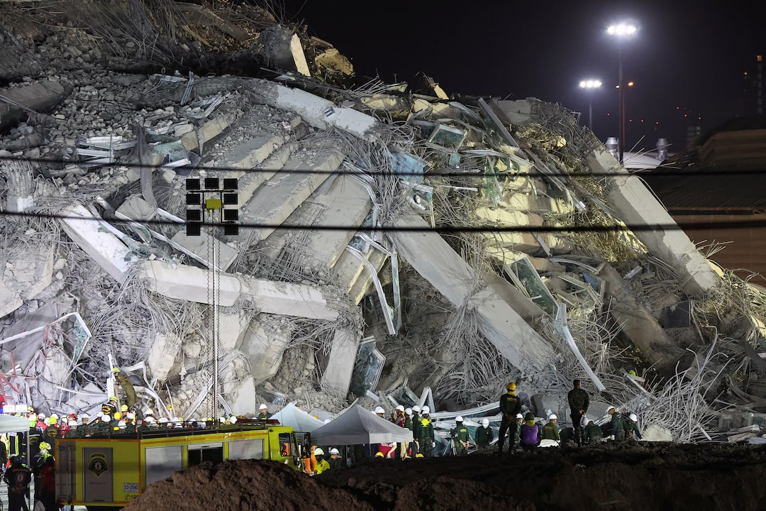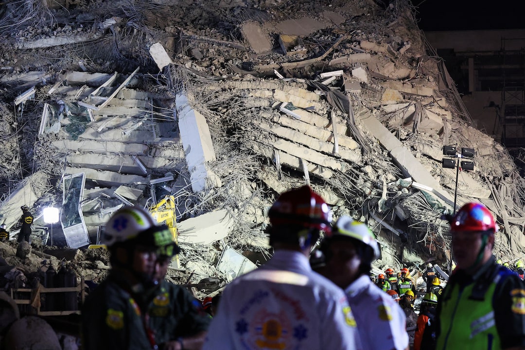 在泰国首都曼谷,一名官员表示至少有九人遇难。救援人员正在废墟中寻找倒塌的塔楼。