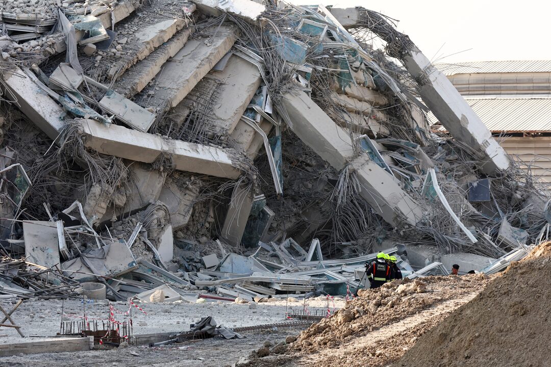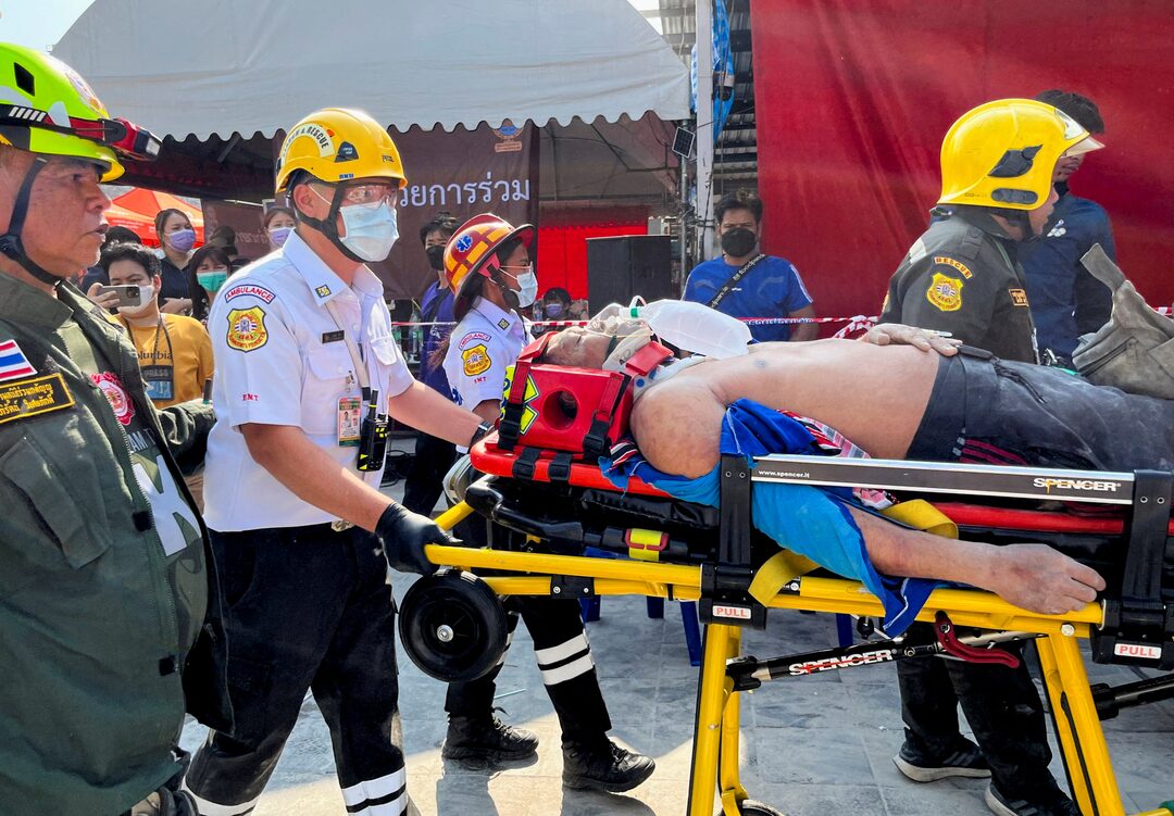 第1项,共5项 救援人员站在一栋在强烈地震后倒塌的建筑物附近,地震监测服务表示,周五在缅甸中部发生的地震也影响了曼谷,泰国首都的人们在震动后惊慌地涌出建筑物,地点在泰国曼谷,2025年3月28日。路透社/阿提特·佩拉翁梅塔