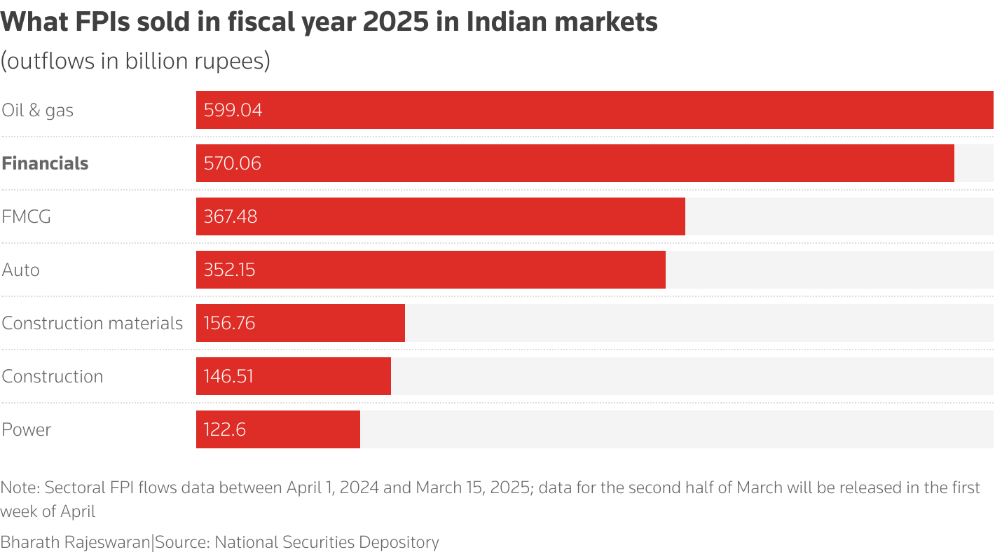 尽管外资投资者在2025财年出售了价值67亿美元的金融股票,约占总流出的41%,但该行业以吸引人的估值结束了这一年。