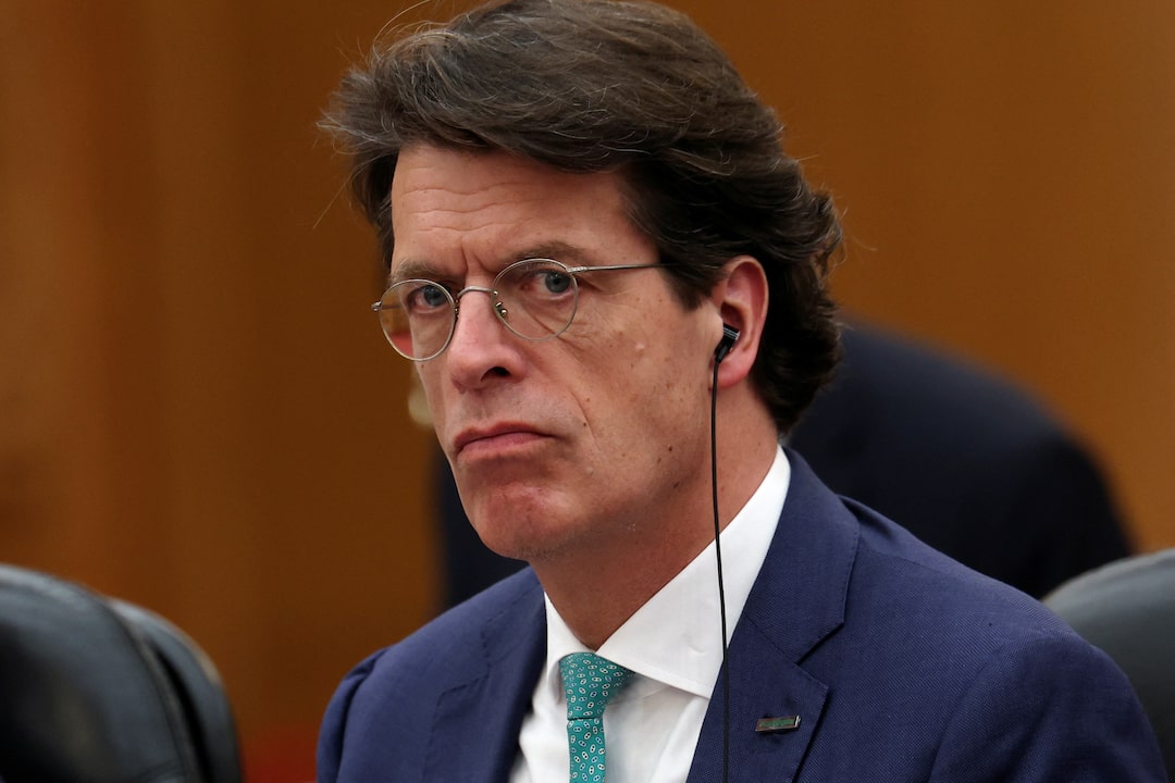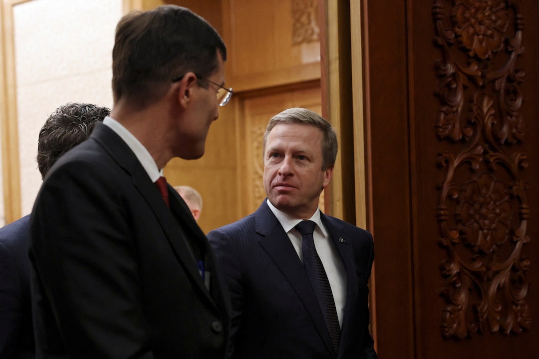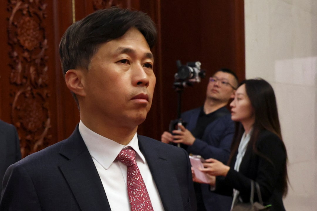 第1项,共5项 宝马首席执行官奥利弗·齐普塞离开会议室,全球商业领袖与中国国家主席习近平会面,地点在中国北京人民大会堂,2025年3月28日。路透社/弗洛伦斯·罗