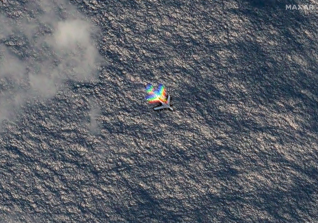 Maxar在给路透社的电子邮件中表示,图像中的飞机是H-6轰炸机,并补充说“彩虹色”是由于处理快速移动物体的卫星图像时产生的。