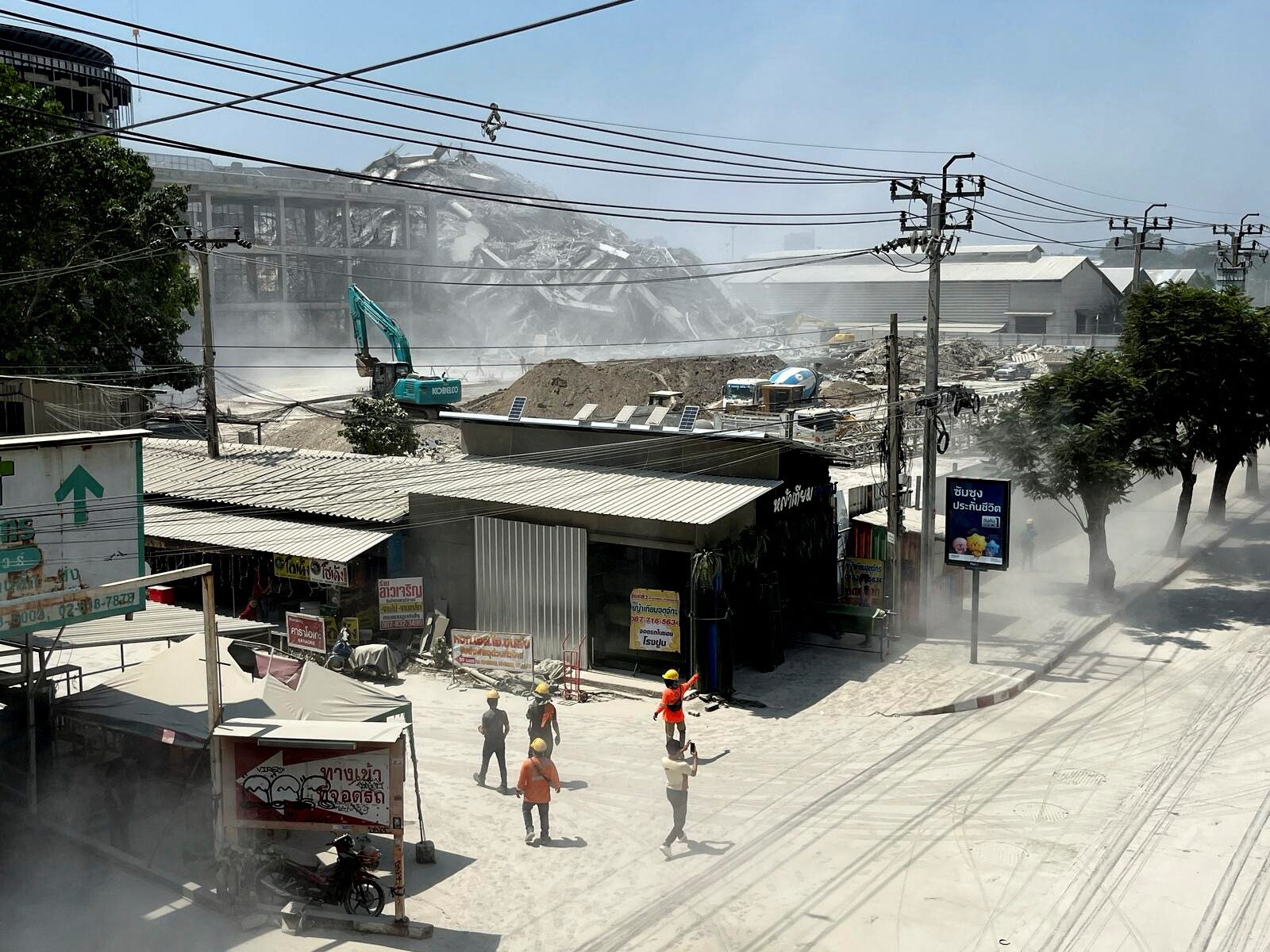缅甸中部发生强烈地震后,一座建筑物倒塌,监测服务称,这次地震也波及到曼谷,迫使人们在泰国首都的震动后涌入街道,地点:泰国曼谷,2025年3月28日。路透社/安王2025年3月28日(路透社)- 一场强烈地震袭击了缅甸中部,缅甸第二大城市曼德勒的多座建筑物倒塌。
